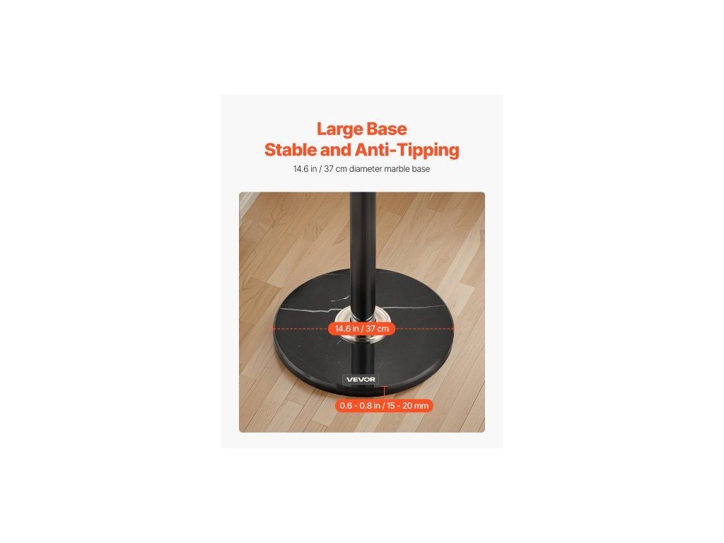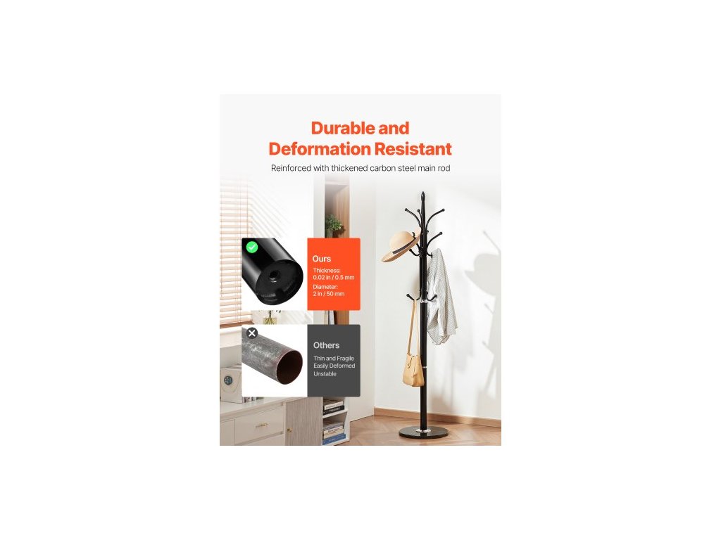 Tloušťka stěny horní trubky: 0,03 palce / 0,8 mm,Průměr horní trubky: 1,26 palce / 32 mm,Tloušťka stěny háčku: 0,024 palce / 0,6 mm,Tloušťka základny: 0,6-0,8 palce / 15-20 mm,Celková nosnost: 40 lbs / 18 kg,Rozměry výrobku: 14,57 x 14,57 x 70,87 palce / 370 x 370 x 1800 mm, Nosnost jednoho háčku: 3 kg, Typ: Volně stojící věšák na kabáty, Průměr základny: 370 mm, Průměr spodní trubky: 50 mm, Číslo modelu položky: GH-6206s, Tloušťka stěny spodní trubky: 0,5 mm, Počet háčků: 3 velké háčky + 3 malé háčky, Čistá hmotnost: 8,3 kg, Hlavní materiál: Uhlíková ocel, Základní materiál: Černý mramor