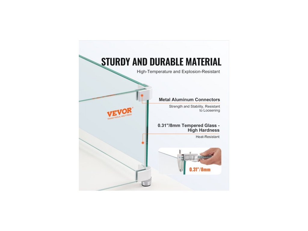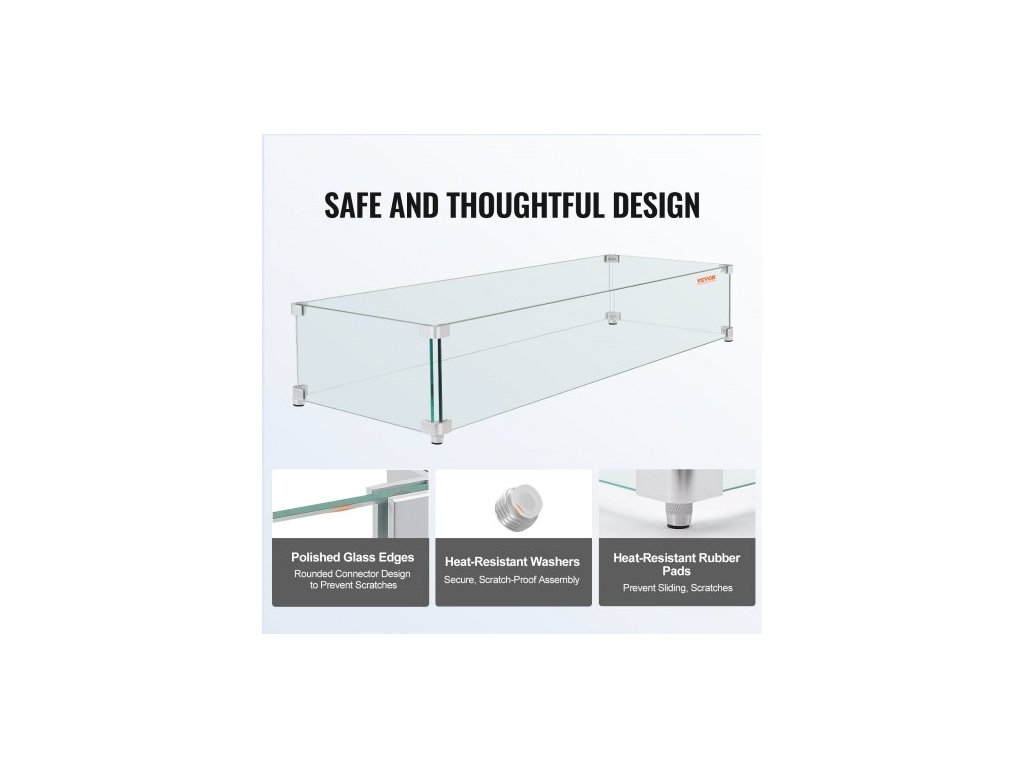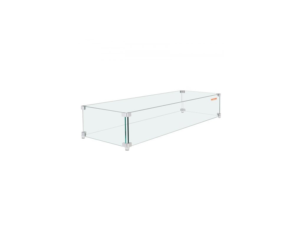 Větrná ochrana ohniště , skleněná větrná ochrana 91 x 26,5 x 15 cm, obdélníkový skleněný štít, tloušťka krbu 0,3", čirý tvrzený skleněný ochranný kryt proti plameni, stabilní nožičky na ochranu ohniště pro propan, plyn, venkovní