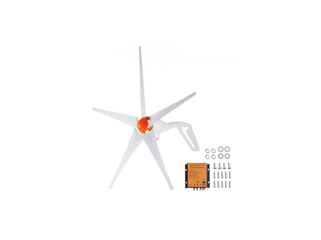 Hladina hluku: 55 dB, Spouštěcí rychlost větru: 2,5 m/s, Jmenovitý výkon: 500 W, Počet listů: 5, Průměr kola: 1,2 m, Jmenovitá rychlost větru: 12 m/s, Ovladač: Součástí balení, Rozměry produktu: 1200 x 1200 x 680 mm, Čistá hmotnost: 6,3 kg 6,95 kg, Jmenovité napětí: 12 V