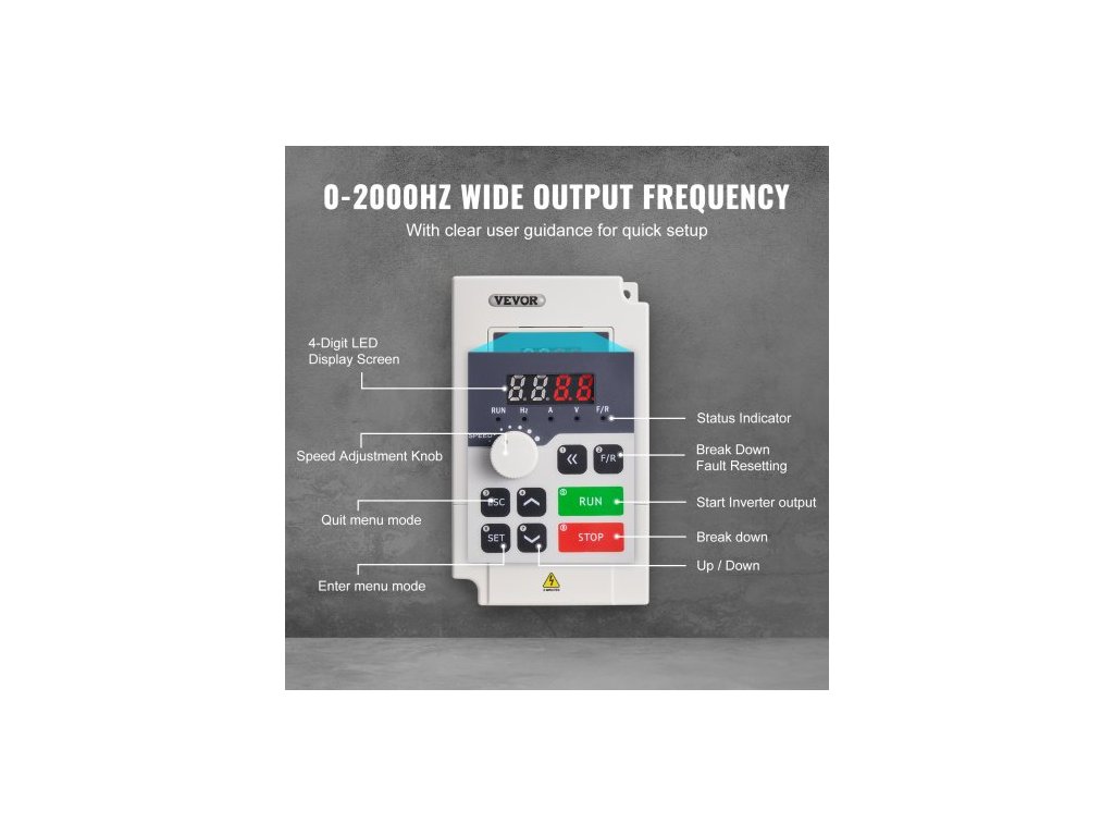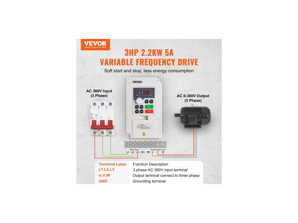 VFD 3HP, 2,2 kW, 5 A, 3fázový AC 380 V vstup na 3fázový AC 0 - 380 V výstup, frekvenční měnič, vstup 50/60 Hz, výstup 0-2000 Hz VFD pro regulaci otáček vřetenaŠiroký rozsah frekvenčního měniče