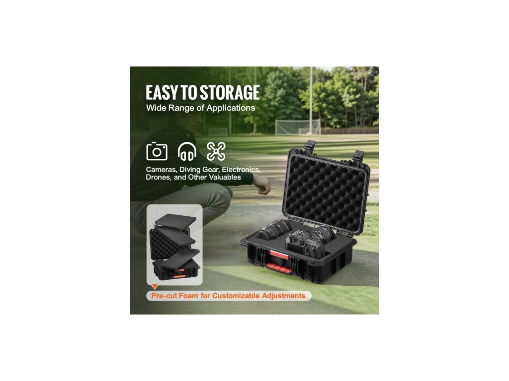 Tvrdé pouzdro odolné proti povětrnostním vlivům, odolné ochranné pouzdro s předřezanou pěnou a zatahovacími rukojeťmi pro cestování, lov, armádu, taktiku, vodotěsné pouzdro IP67 pro fotoaparáty (40x32x16,6)Celoplošná ochrana