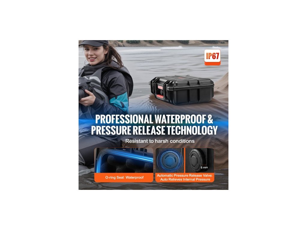 Voděodolné pevné pouzdro, odolné ochranné suché pouzdro s předřezanou pěnou a zatahovacími rukojeťmi pro cestování, lov, armádu, taktiku, vodotěsné pouzdro IP67 pro fotoaparáty (40x32x16,6)