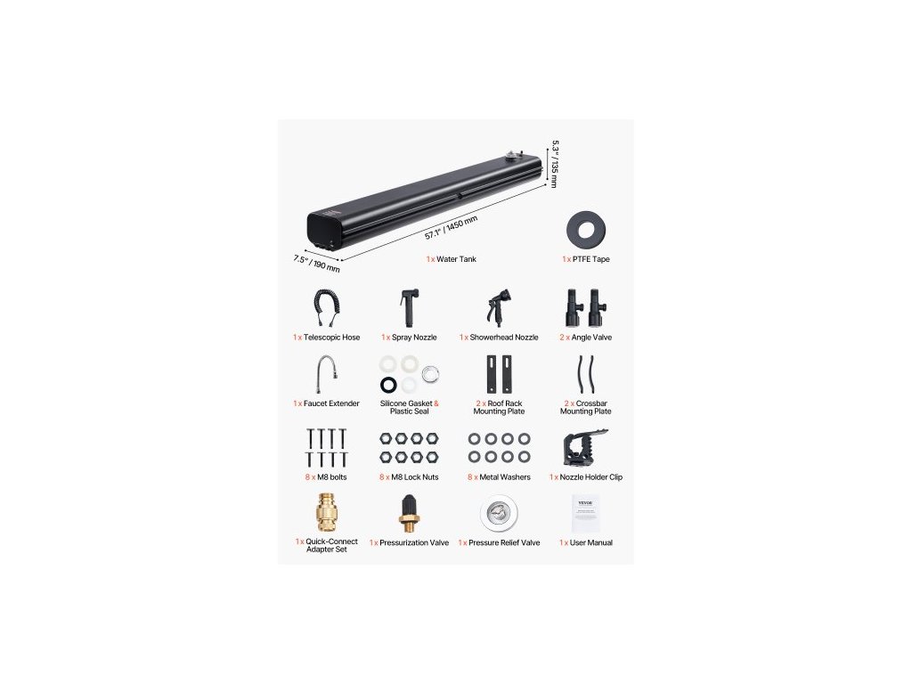 Objem nádrže: 7 gal / 26,5 l,Číslo modelu položky: YK-SX-26L,Rozměry produktu: 57,1 x 7,5 x 5,3 palce / 1450 x 190 x 135 mm,Čistá hmotnost: 26,3 lbs / 11,95 kg (včetně veškerého příslušenství)