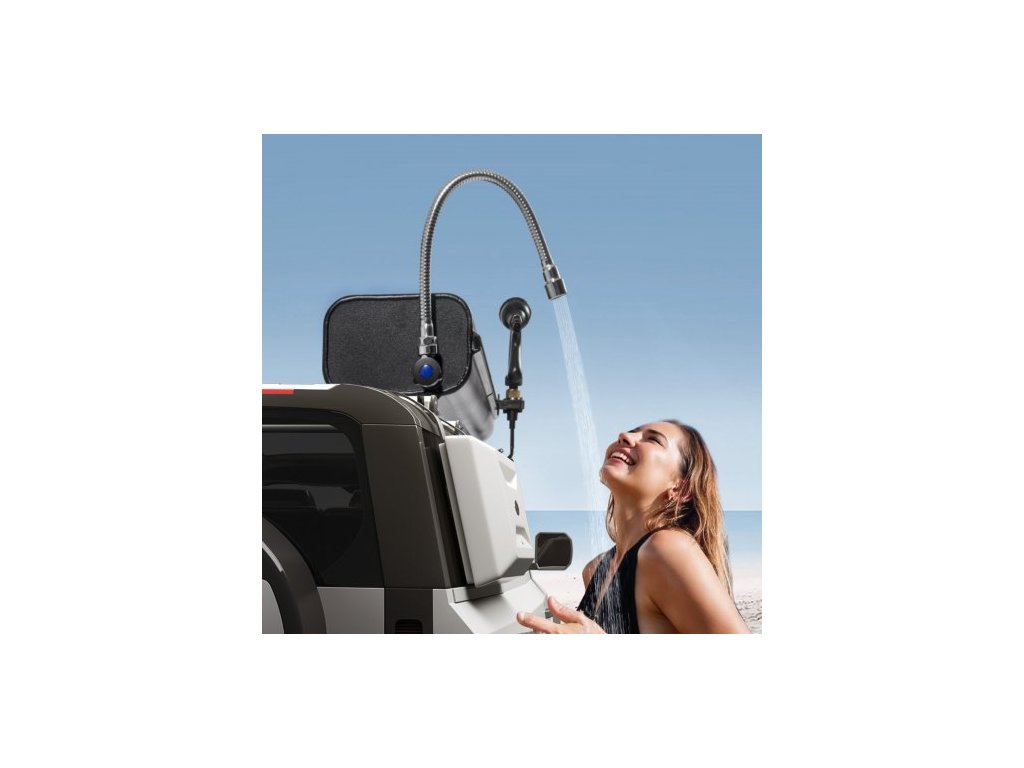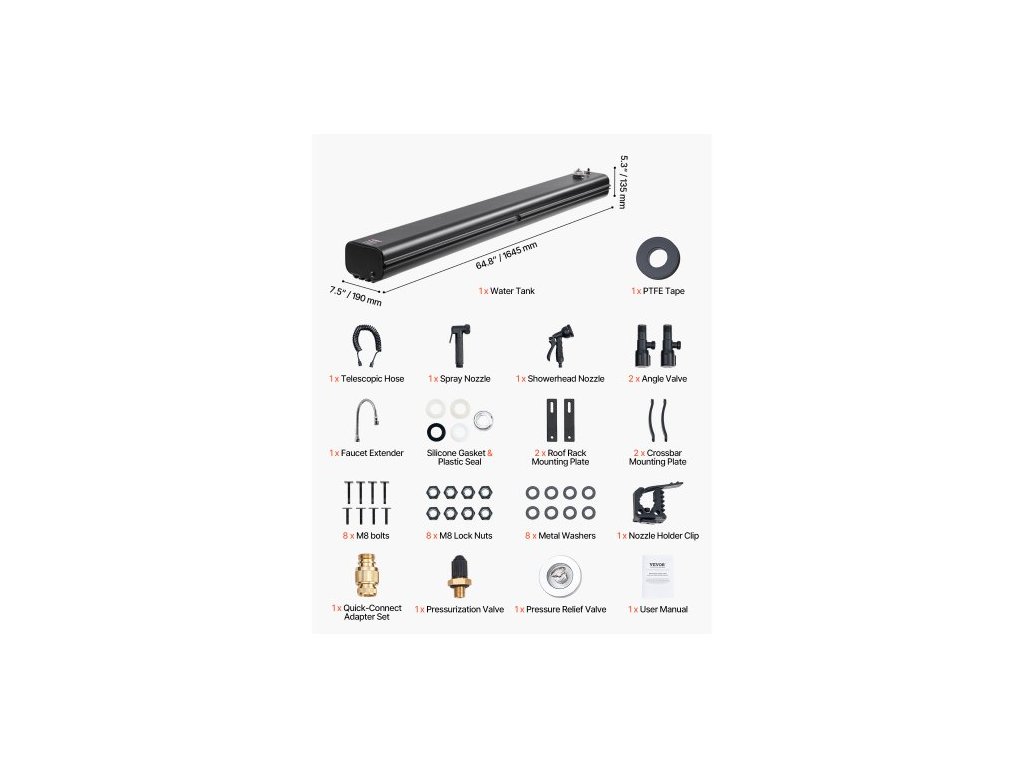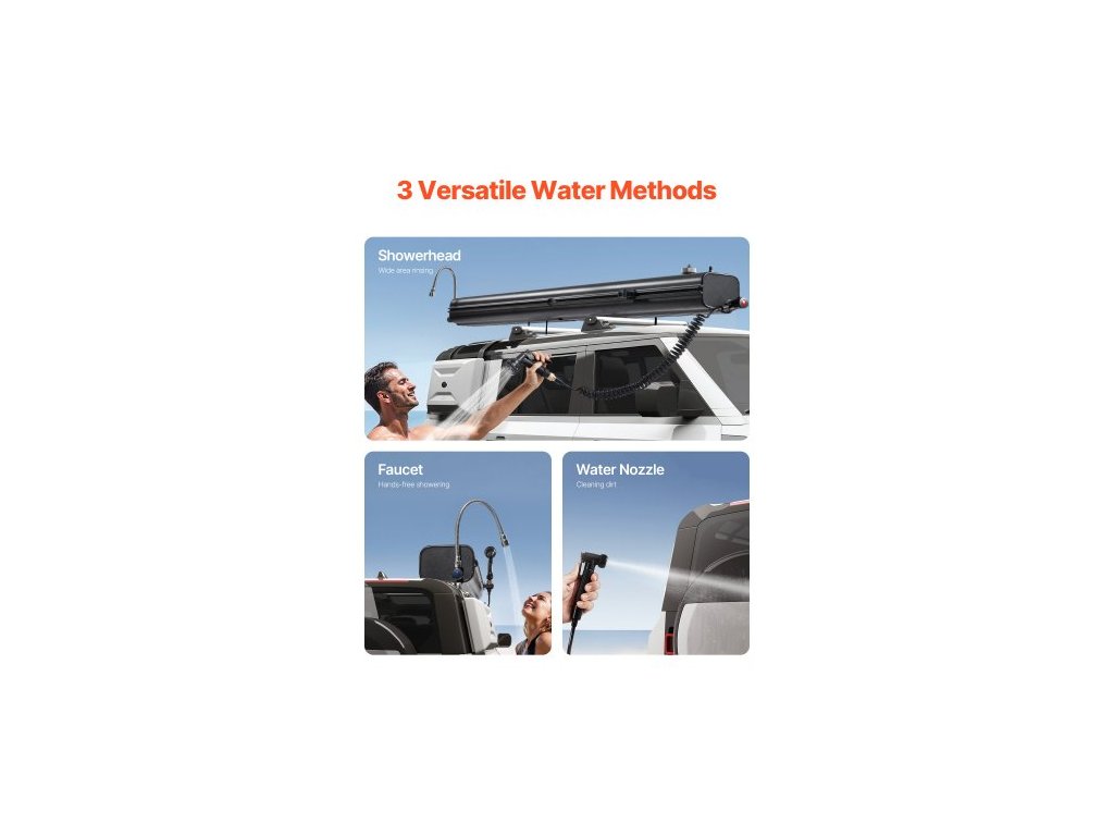 Vodní nádrž pro střešní nosič, 8 galonů, venkovní nádrž s více výdejními otvory, 2 ochrannými panely proti stříkající vodě a T-drážkou, vysokokapacitní hliníková nádrž s tlakovým portem, vhodná pro kufry, ochranné rámy a příčníkyDlouhá teleskopická hadice