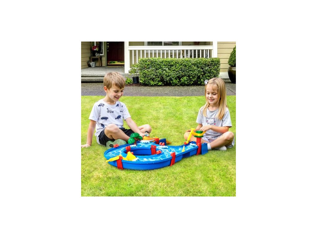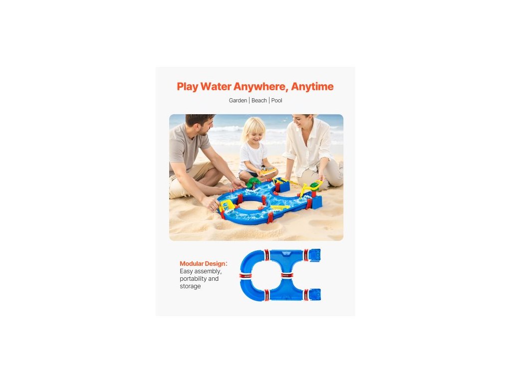 Vodní stůl pro batolata, dětská aktivní hrací vodní dráha, venkovní letní herní sada do aquaparku s 39 díly příslušenství pro zahradu, trávník, pláž, senzorický herní stůl pro chlapce a dívky od 3 letZpestření zábavy s více díly