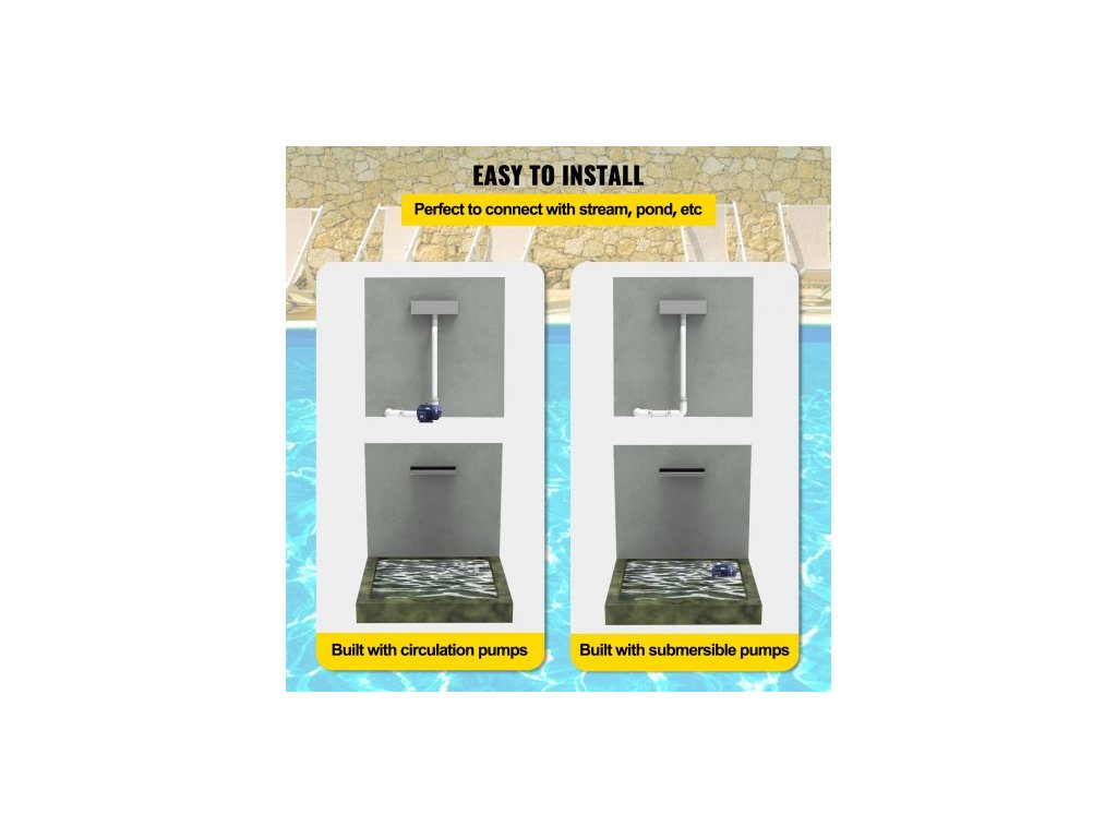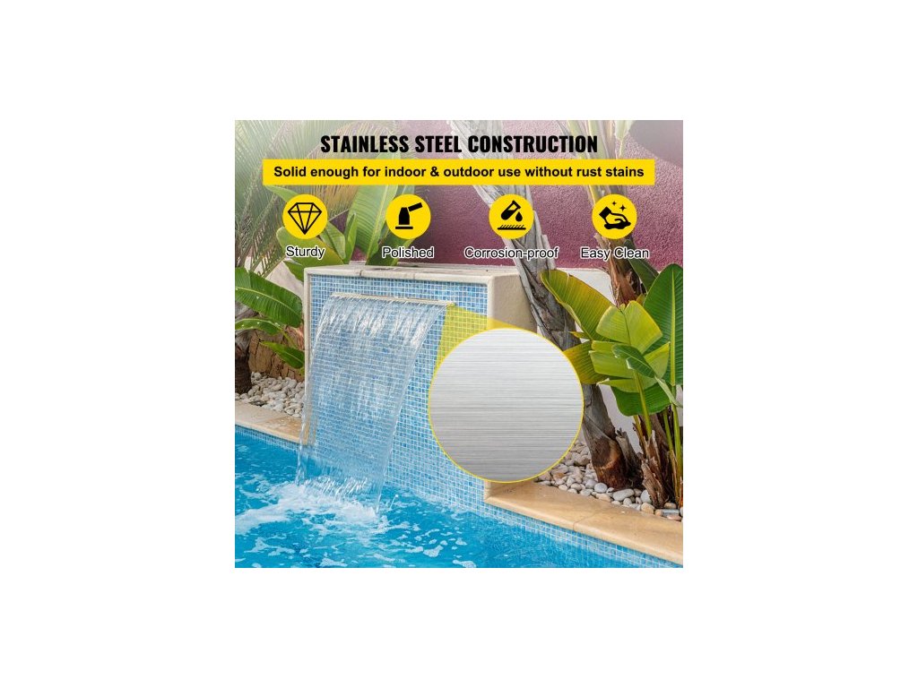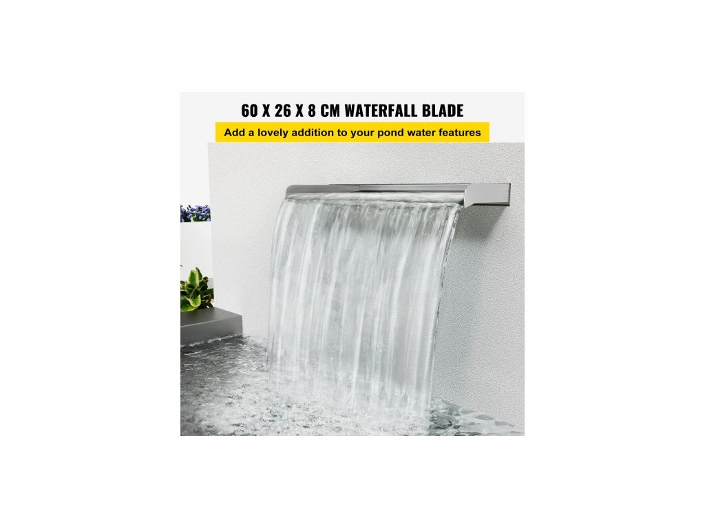 vodopádová čepel, 60cm nerezový přeliv, obdélníková vodopádová fontána, kaskádová čepel s konektorem, hadicí, svorkou a PTFE páskou, vodní čepel pro jezírko s koi kapry, vodní prvek