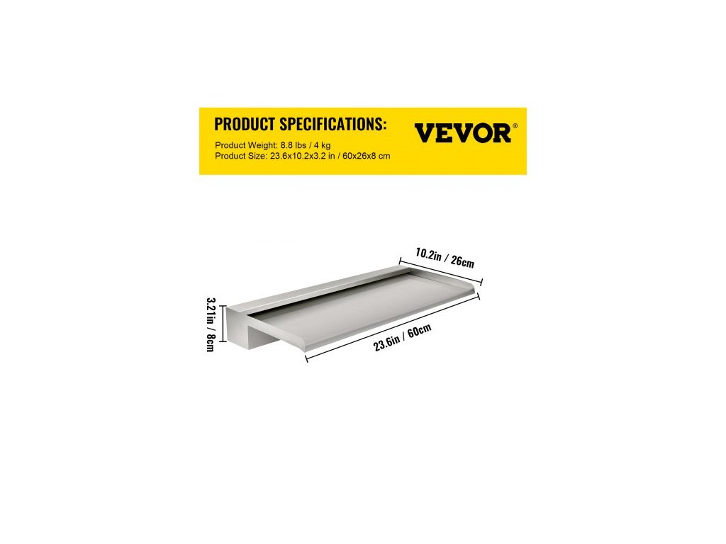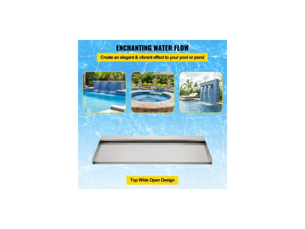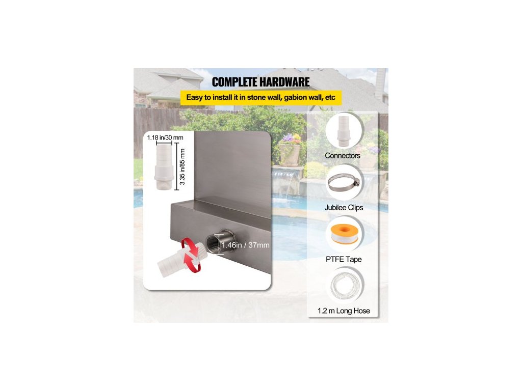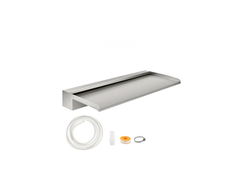 Vodopádová čepel, 60cm nerezový přeliv, obdélníková vodopádová fontána, kaskádová čepel s konektorem, hadicí, svorkou a PTFE páskou, vodní čepel pro jezírko s koi kapry, vodní prvekVelký vodopádový přeliv