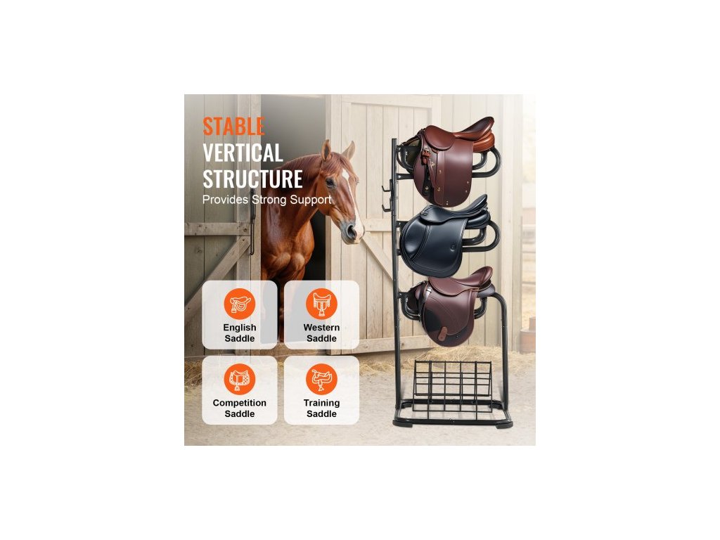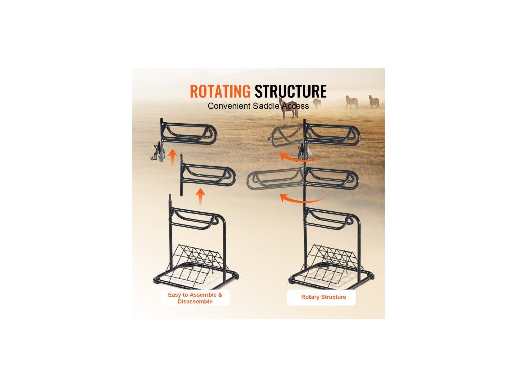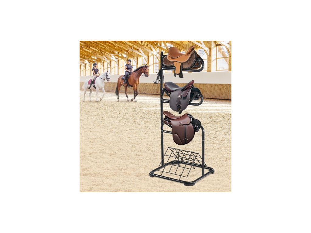 Volně stojící stojan na sedla , 81 x 81 x 172 cm, 3patrový stojan na sedla, odolný držák na deku na sedla s odnímatelnými a otočnými patry, stojan na sedla v anglickém a westernovém stylu pro organizaci sedla v sedle