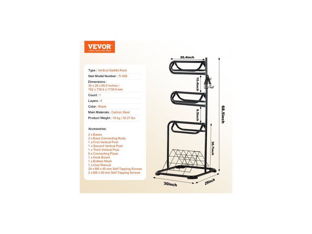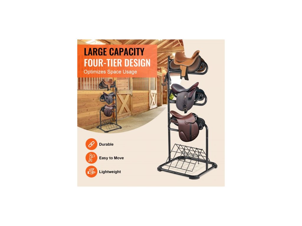 Stojan na sedla Volně stojící, 30 x 30 x 68,5 palce, 3patrový stojan na sedla, odolný držák deky na sedla s odnímatelnými a otočnými patry, anglický a westernový stojan na sedla pro organizaci sedlovnyChytré úložiště
