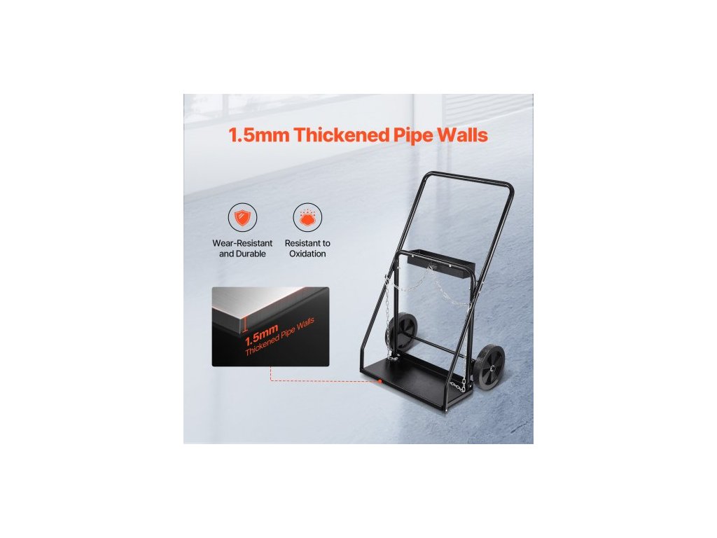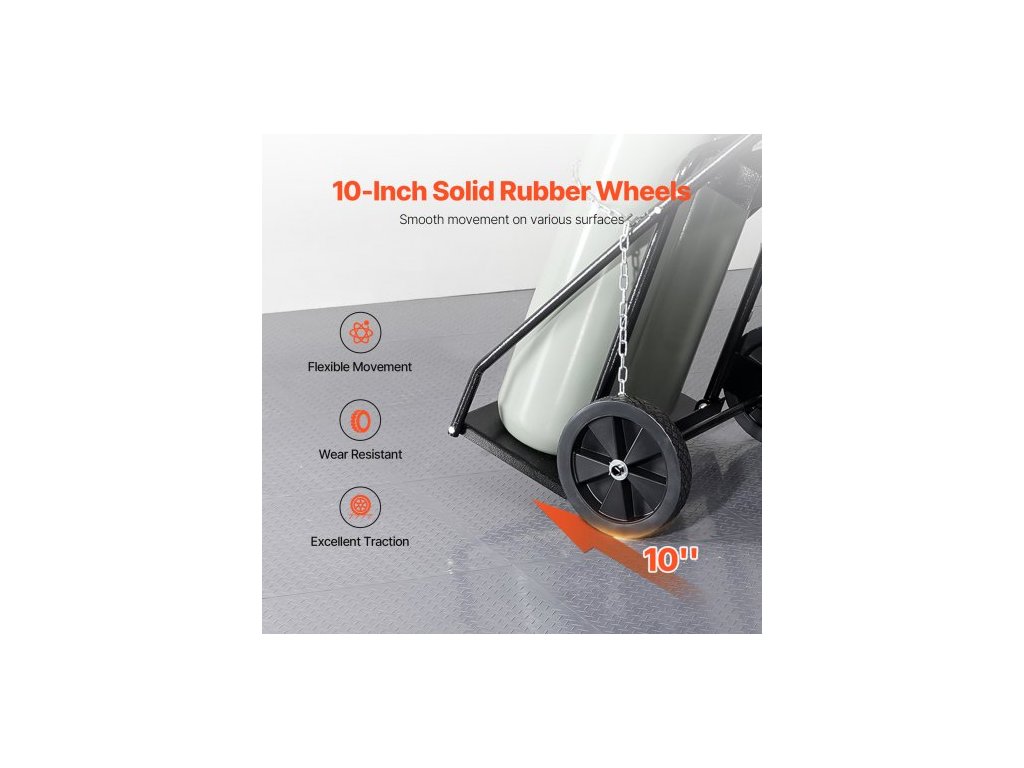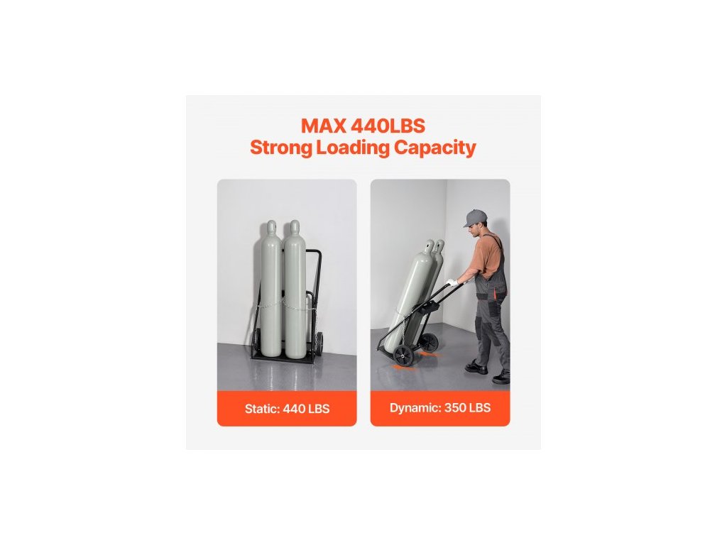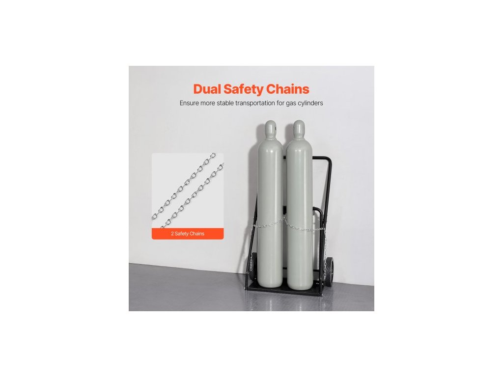 Vozík na dvojité svařovací lahve , vozík na kyslíko-acetylenové lahve se statickou nosností 440 liber, 10palcová pevná kola a bezpečnostní řetězy pro skladování lahví, vhodný pro dvojité plynové lahve o průměru 12,5 palceOdolný a spolehlivý
