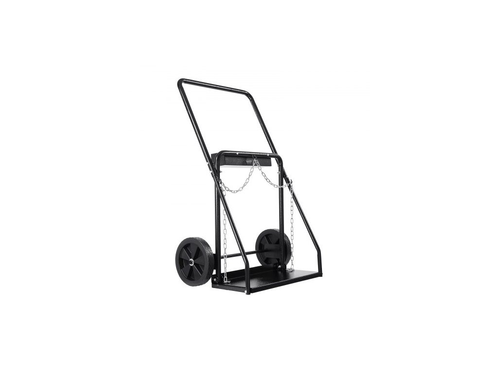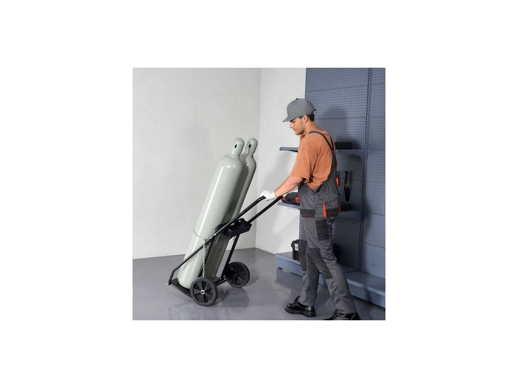 Vozík na dvojité svařovací lahve , vozík na kyslíkovo-acetylenové lahve s nosností 200 kg, 25 cm plná kola a bezpečnostní řetězy pro skladování lahví, vhodný pro dvojité plynové lahve o průměru 32,5 cm