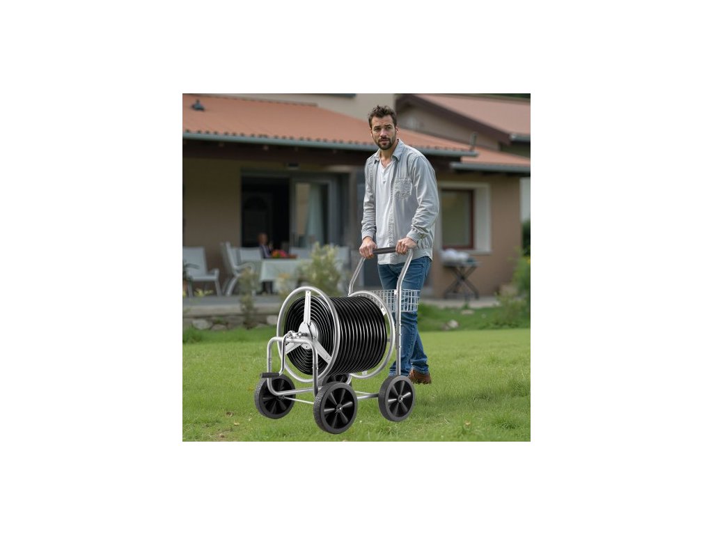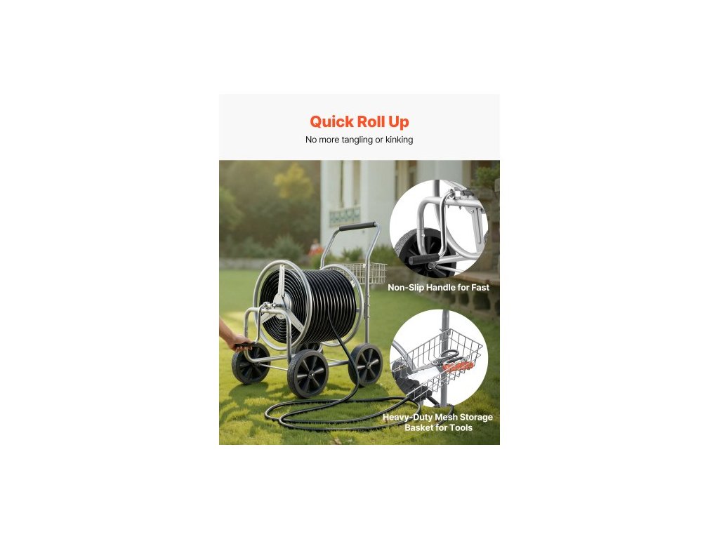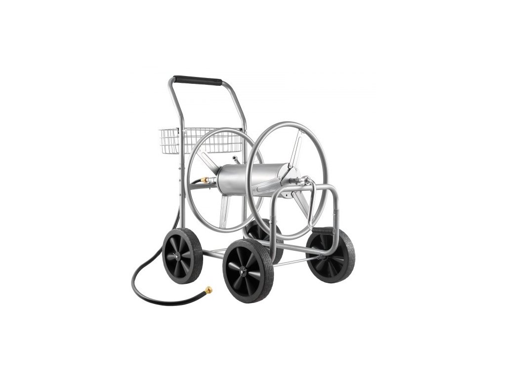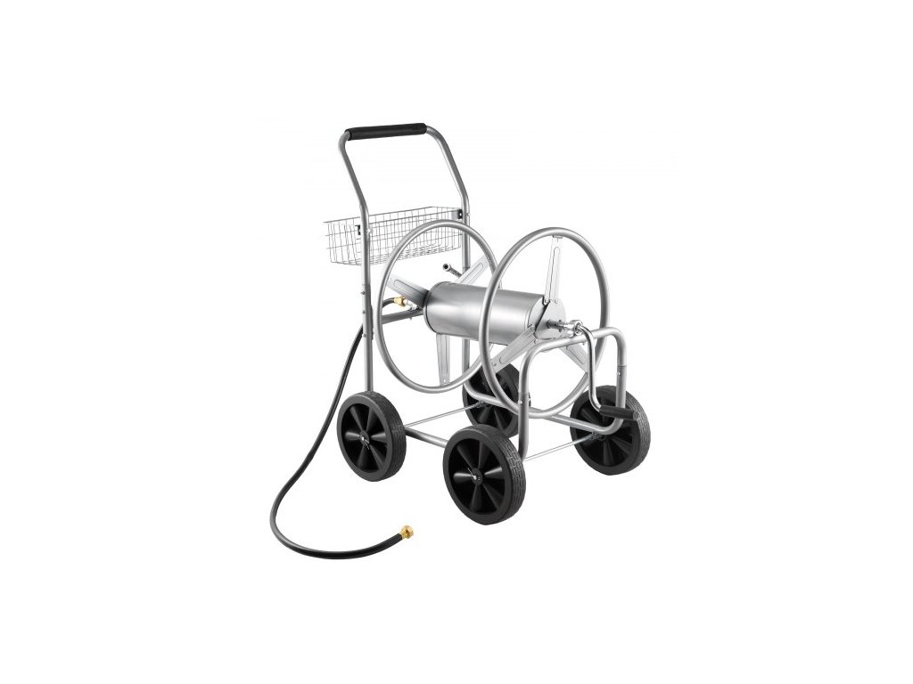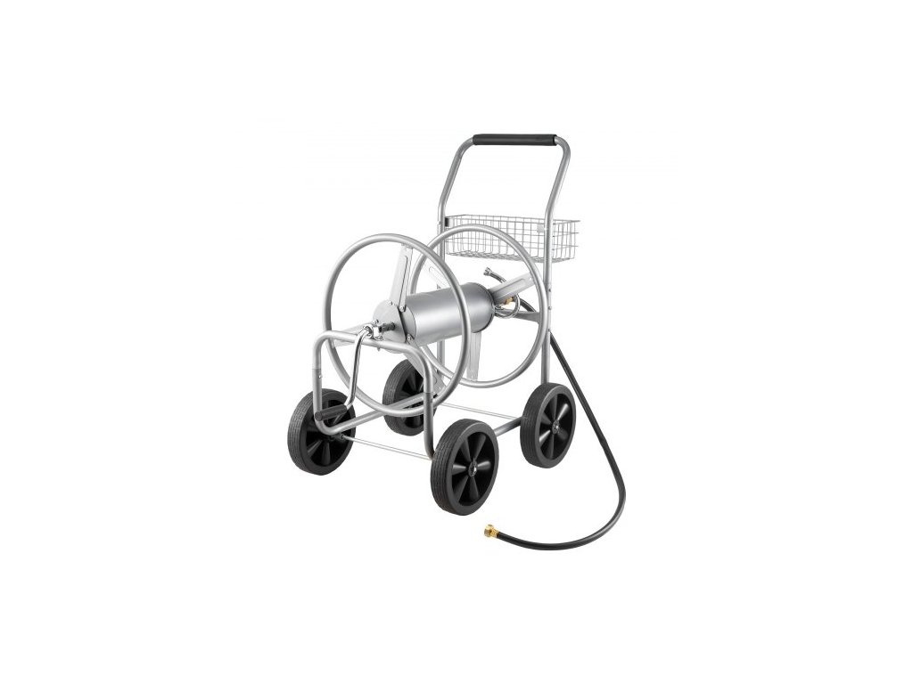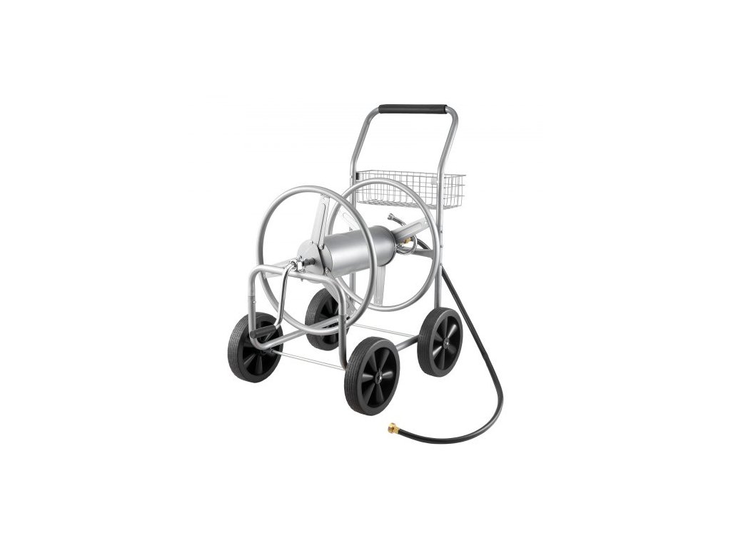 Vozík na hadici , pojme až 76 metrů hadice 5/8'', zahradní vozíky na hadice, mobilní nářadí se 4 kolečky, odolná ocel s práškovým nástřikem, venkovní výsadba s úložným košem, pro zahradu, dvůr, trávník