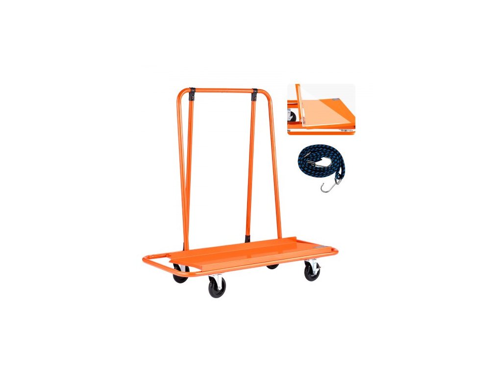Vozík na sádrokarton, nosnost 816 kg, ocelový vozík na panely se 4 otočnými kolečky, odolný a s dlouhou životností, vozík na panely s upevňovacím popruhem pro překližku, sádrokarton, sklo, oranžový
