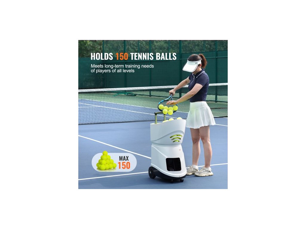 Vrhač tenisových míčků , automatický přenosný vrhač tenisových míčků, tenisový tréninkový vrhač na 150 míčků, 5 motorů, vícerežimové cvičení, 2+ hodiny hry, dobíjecí baterie, dálkové ovládání pomocí aplikaceMultifunkčnost