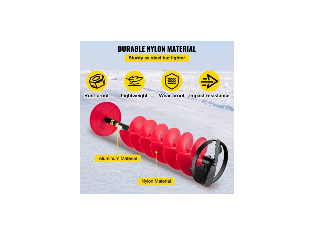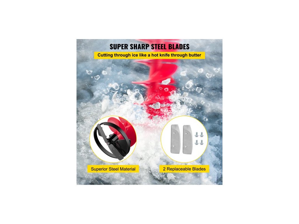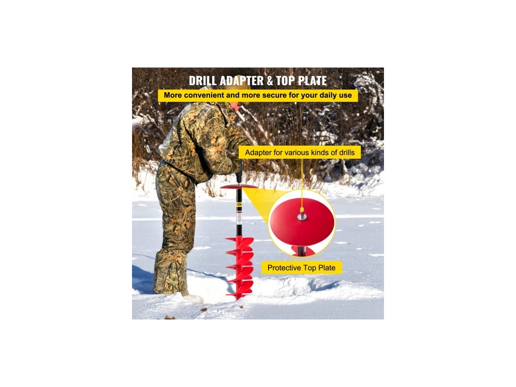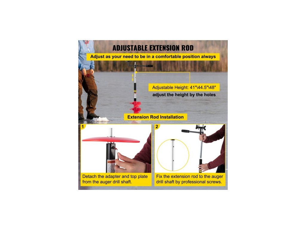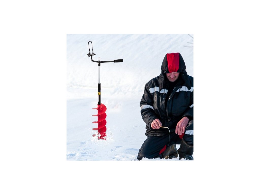 vrták do ledu, nylonový vrták do ledu o průměru 8", délka vrtáku do ledu 41", vrták s nastavitelnou prodlužovací tyčí 14", gumová rukojeť, adaptér pro vrtání, vyměnitelná čepel vrtáku pro lov ledových ryb
