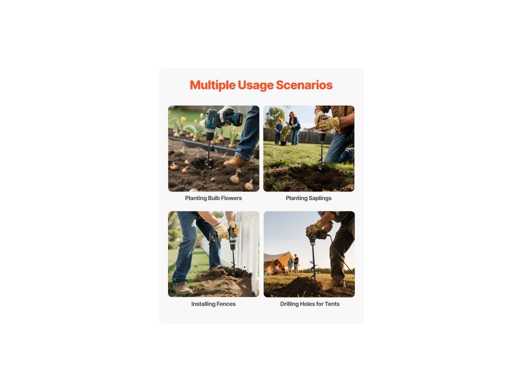 vrták s vrtákem pro sázení, spirálový vrták 40 x 220 mm, pro vrtačky s šestihranným pohonem 3/8", nástroj pro vysoce odolné cibulové sázecí stroje, nástavce pro vrtání otvorů pro zahradní sloupky a plotÚspora času a snadné sázení