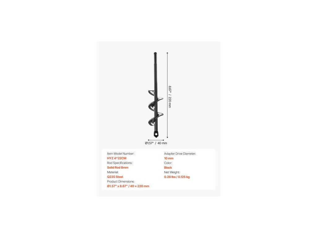 Průměr adaptéru: 10 mm, Specifikace tyče: Plná tyč 8 mm, Barva: Černá, Číslo modelu položky: HYZ 4*22CM, Materiál: Ocel Q235, Rozměry výrobku: Ø1,57" x 8,67" / 40 x 220 mm, Čistá hmotnost: 0,28 lbs / 0,125 kg