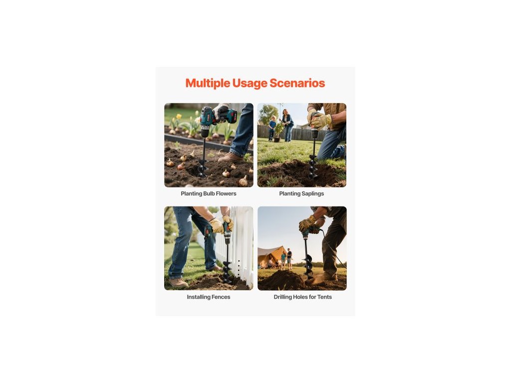 vrták s vrtákem pro sázení, spirálový vrták 80 x 410 mm, pro vrtačky s šestihranným pohonem 3/8", nástroj pro vysoce odolné cibulové sázecí stroje, nástavce pro vrtání otvorů pro zahradní sloupky a plotÚspora času a snadné sázení