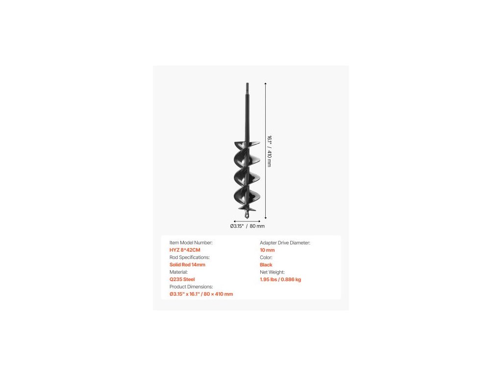 vrták na sázení, spirálový vrták 80 x 410 mm, pro vrtačky s šestihranným utahovákem 3/8", nástroj pro vysoce odolné sázecí stroje na cibuloviny, příslušenství pro vrtání otvorů pro zahradní vrtačku, vrtání otvorů pro plot, kopání otvorů