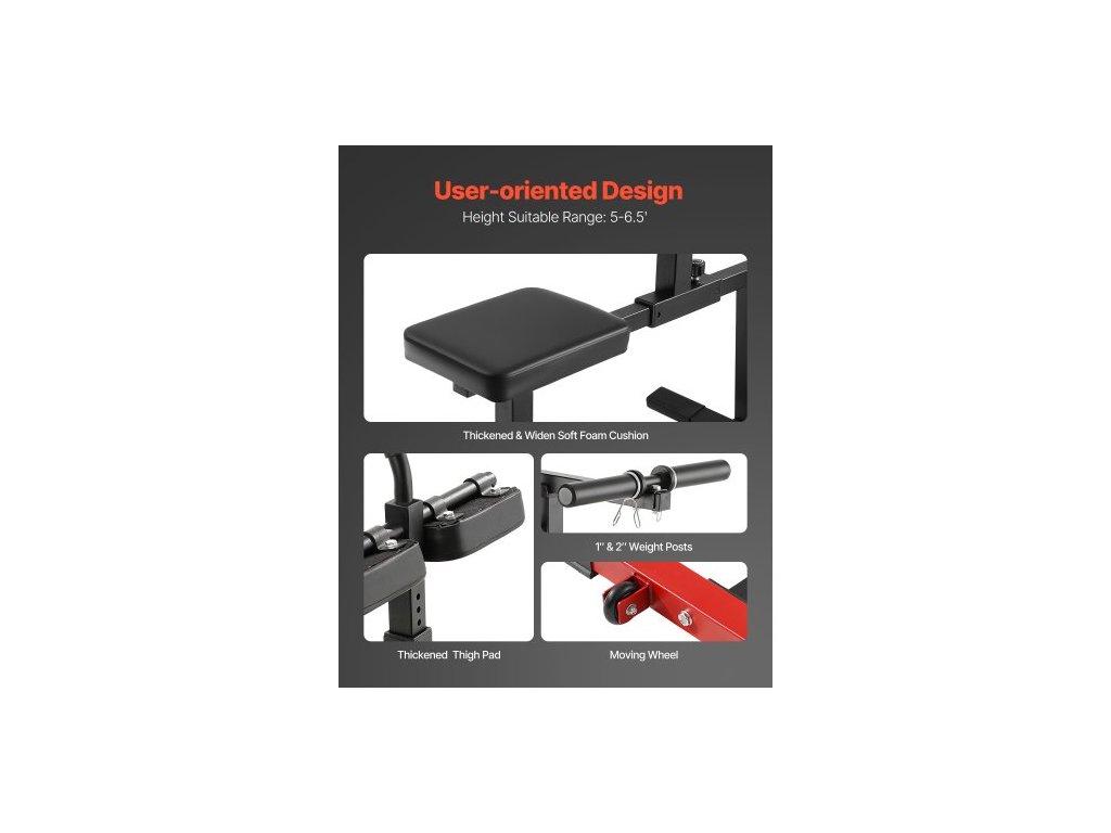 Rozměry stehenních chráničů: 8 x 5 x 2 palce / 200 x 120 x 50 mm, Barva: Černá + červená, Číslo modelu položky: UB2912, Hmotnost výrobku: 41 liber / 18,7 kg ± 3 %, Materiál: Uhlíková ocel, Nastavení výšky rukojeti: 5 úrovní (1 palec / úroveň), Velikost polštáře: 13 x 10 x 2 palce / 330 x 265 x 50 mm, Horizontální nastavení polohy rukojeti: 4 úrovně (1 palec / úroveň), Rozměry výrobku: 56 x 35 x 23 palců / 1422 x 893 x 591 mm