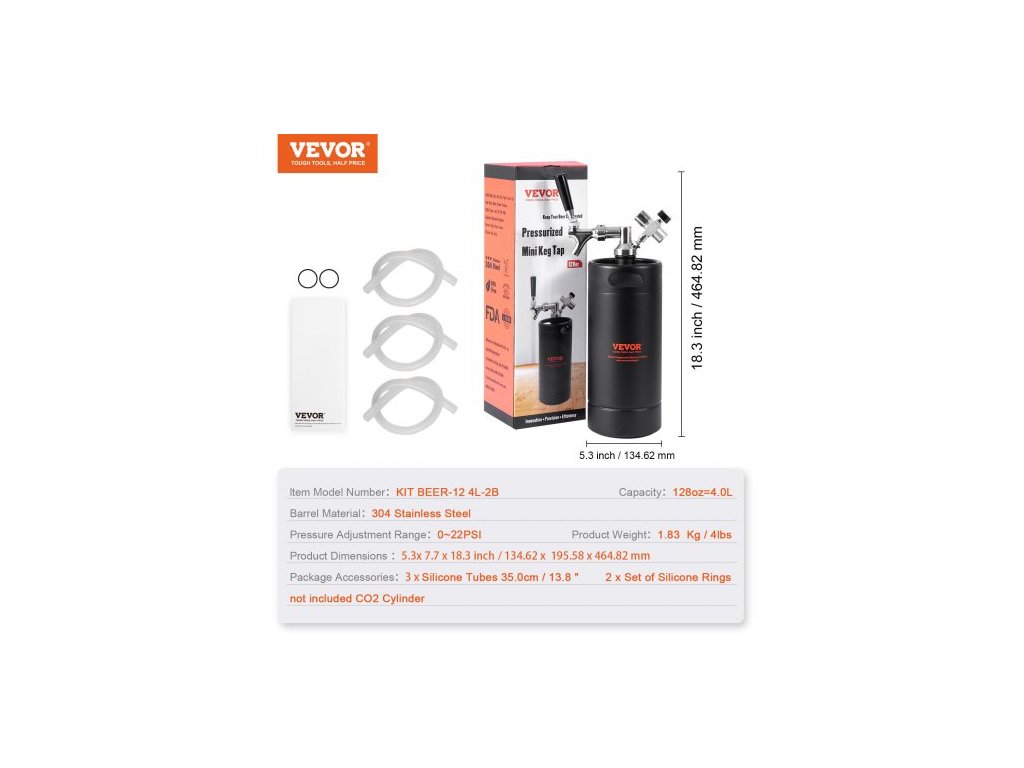 Materiál rukojeti výčepu: kaučukovník,Objem: 4 l,Číslo modelu položky: KIT BEER-12 4L-2B,Hmotnost výrobku: 1,83 kg / 4 lbs,Rozsah nastavení tlaku: 0~30 PSI