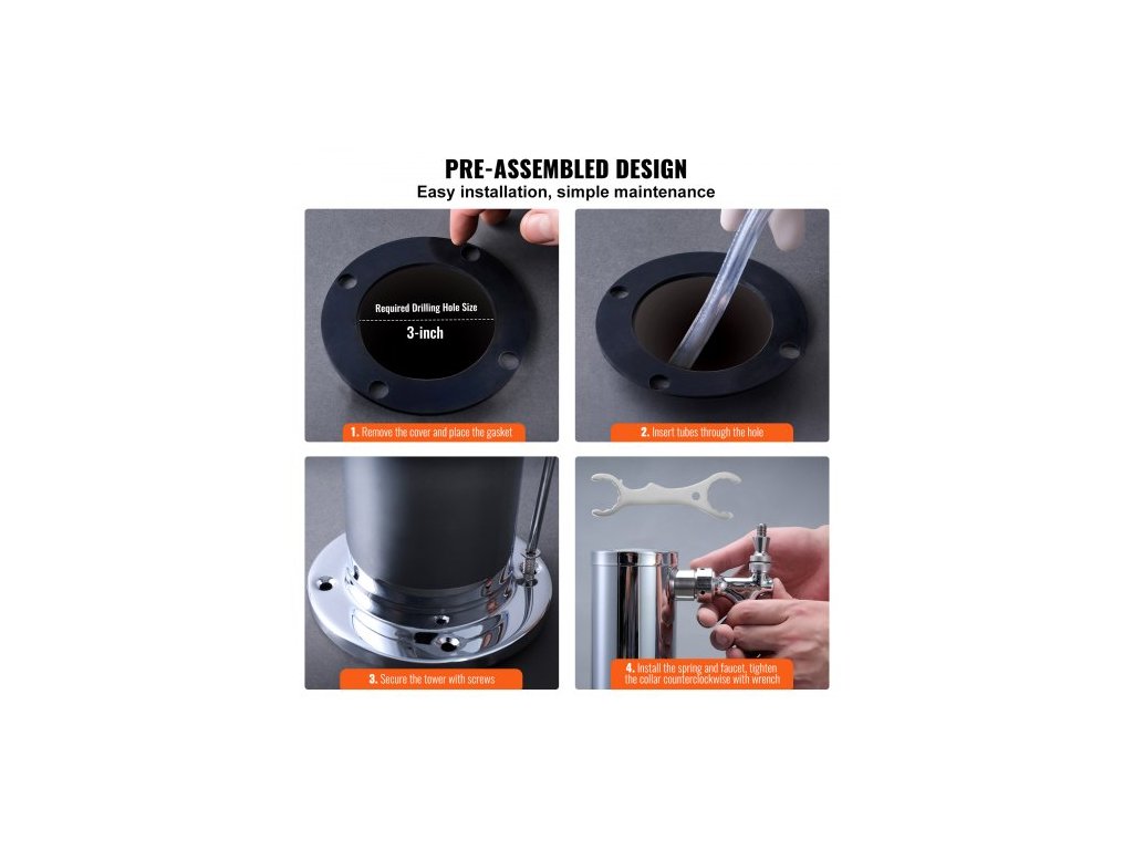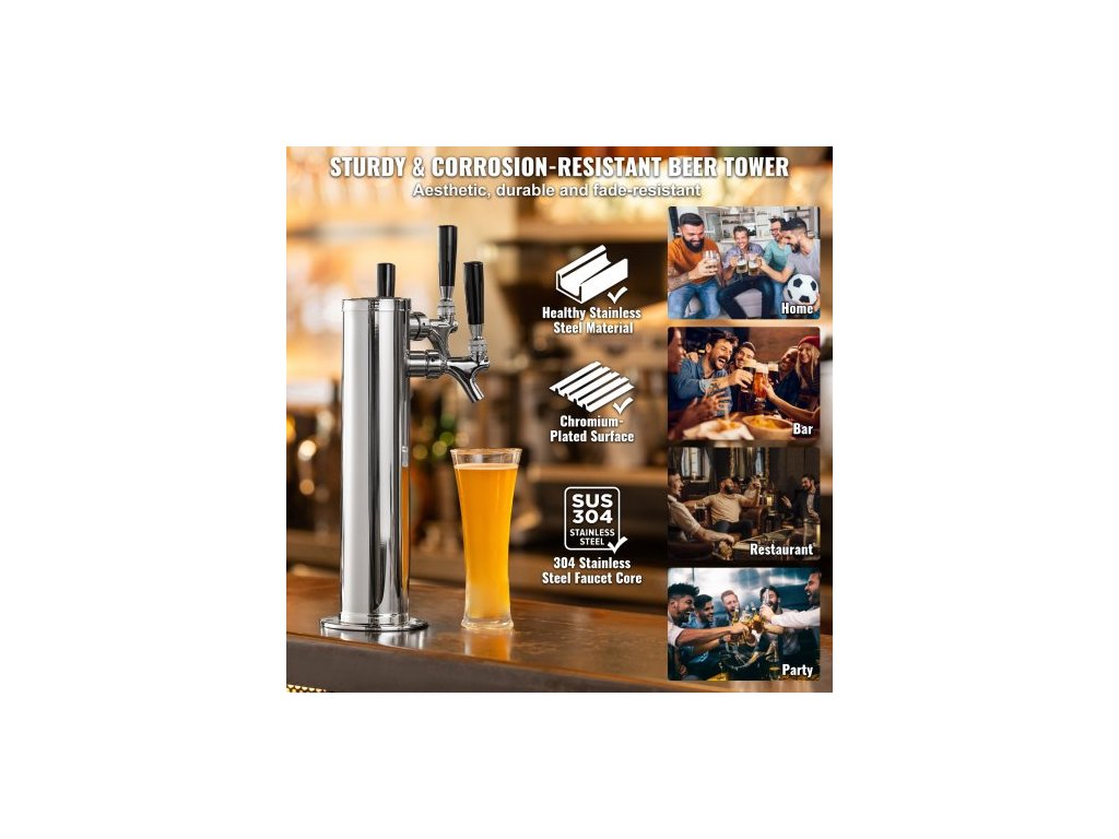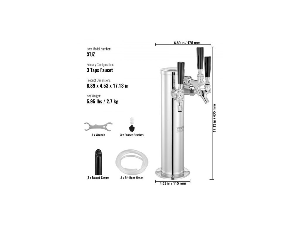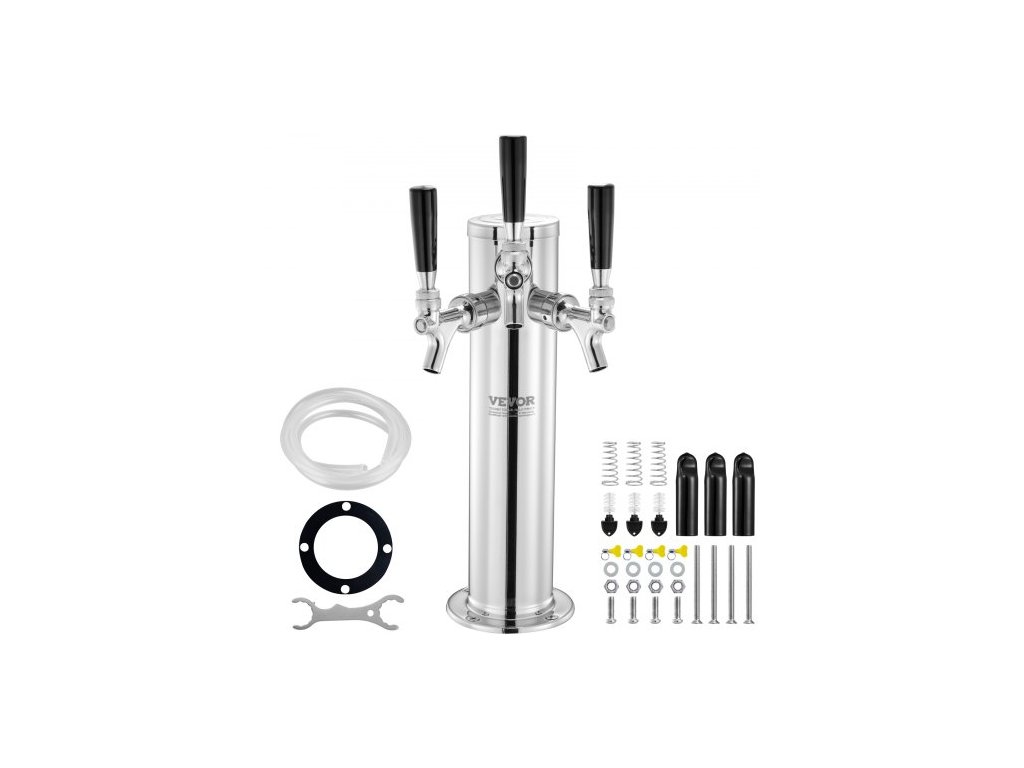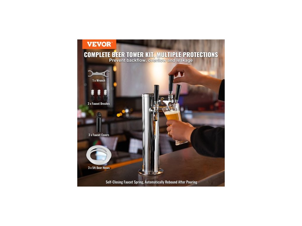 Výčepní věž Triple Taps, věž na točené pivo z nerezové oceli, sada věže Kegerator s předem smontovanými trubkami a samouzavíracími rameny kohoutku pro párty, bar, hospodu, restauraci
