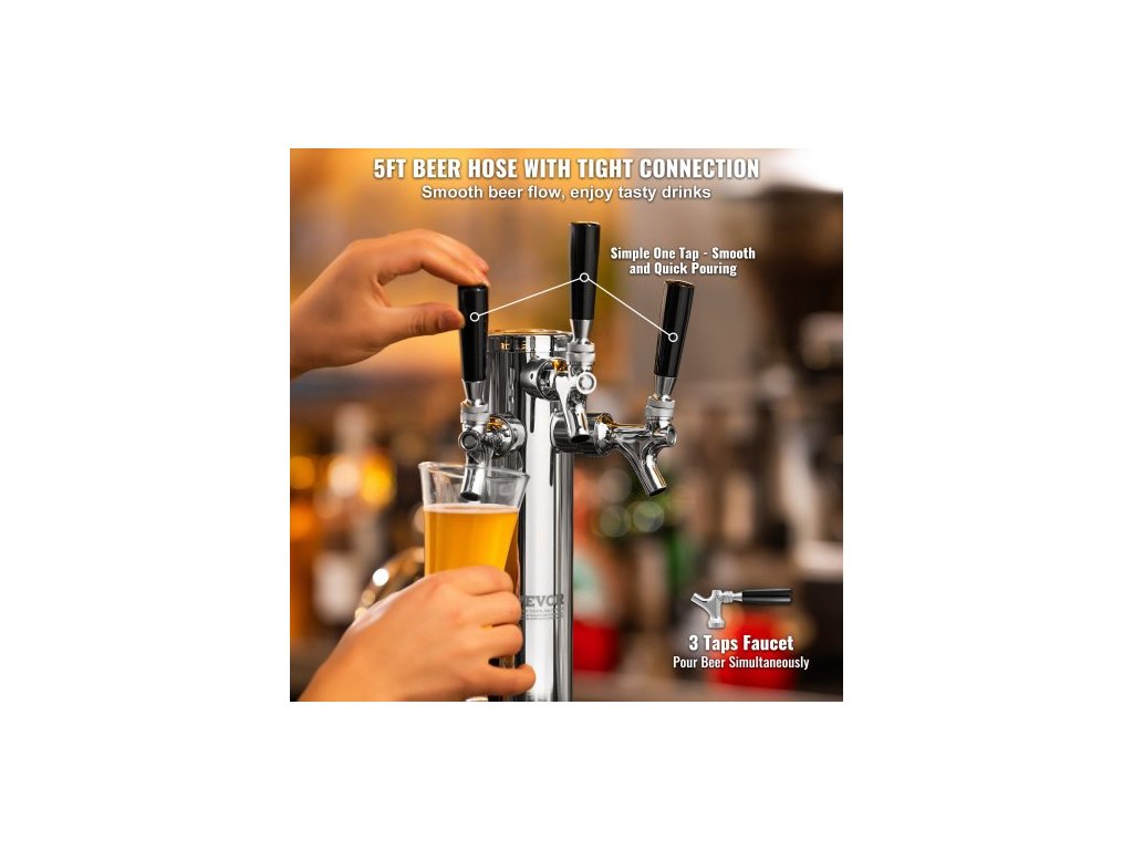 Výčepní věž Triple Taps, věž na pivo z nerezového sudu, sada věže Kegerator s předem smontovanými trubkami a samouzavíracími rameny pro párty, bar, hospodu, restauraciUchovávejte si čerstvost, vychutnejte si každou chuť