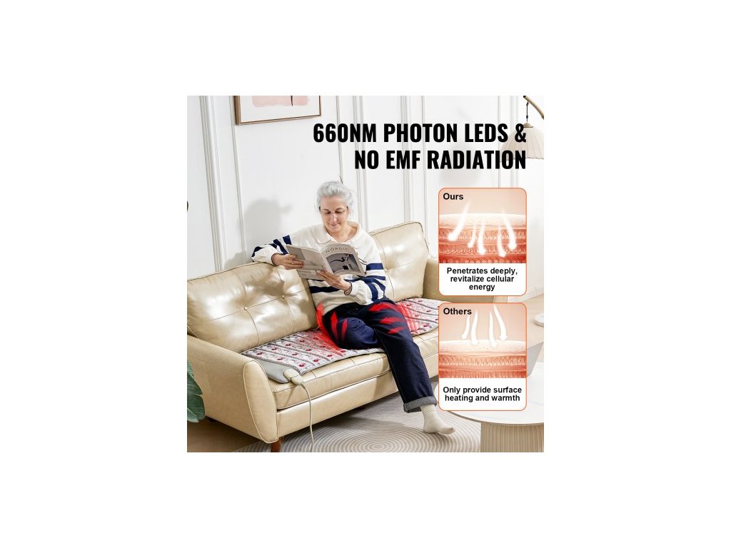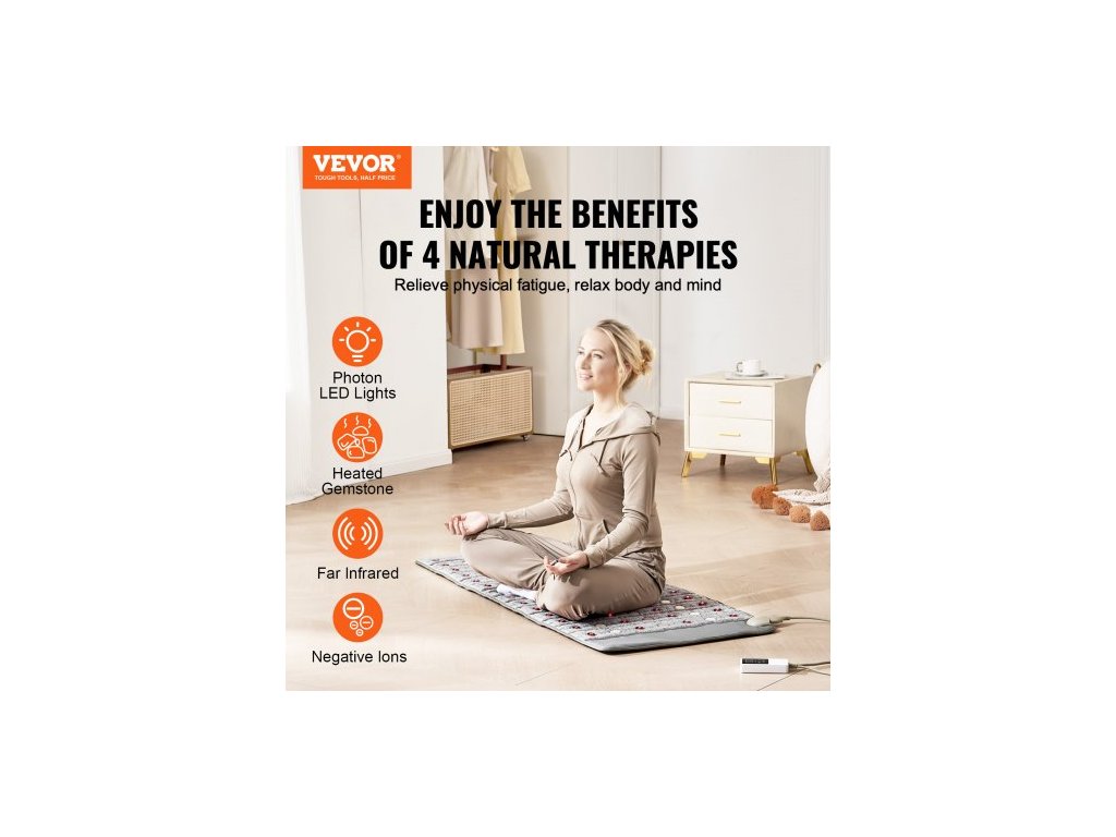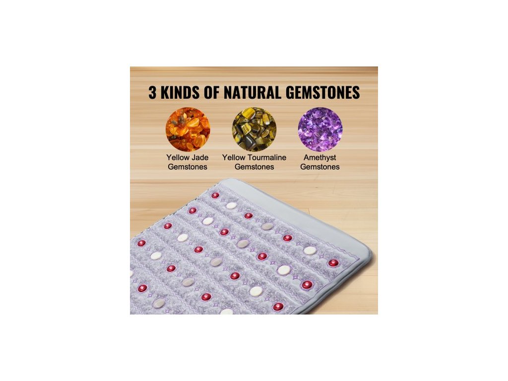 vyhřívací podložka s dalekým infračerveným zářením, ametystová vyhřívací podložka s nefritem a turmalínem, fotonové světlo 660nm a negativní ionty, podložka s horkými drahokamy 103-159℉ s časovačem 0-720 min pro pas a ramena (60" x 24")