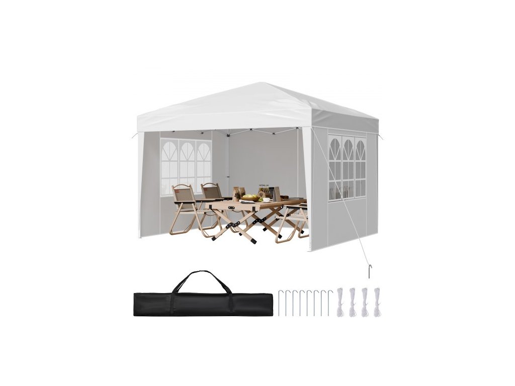 Výklopný zastřešující altán, 2,95 x 2,95 m, přenosný altán s okamžitou stříškou, 3 bočními stěnami a 2 větranými okny, výškově nastavitelný výklopný venkovní přístřešek pro akce, terasu, zahradu, párty, parkování