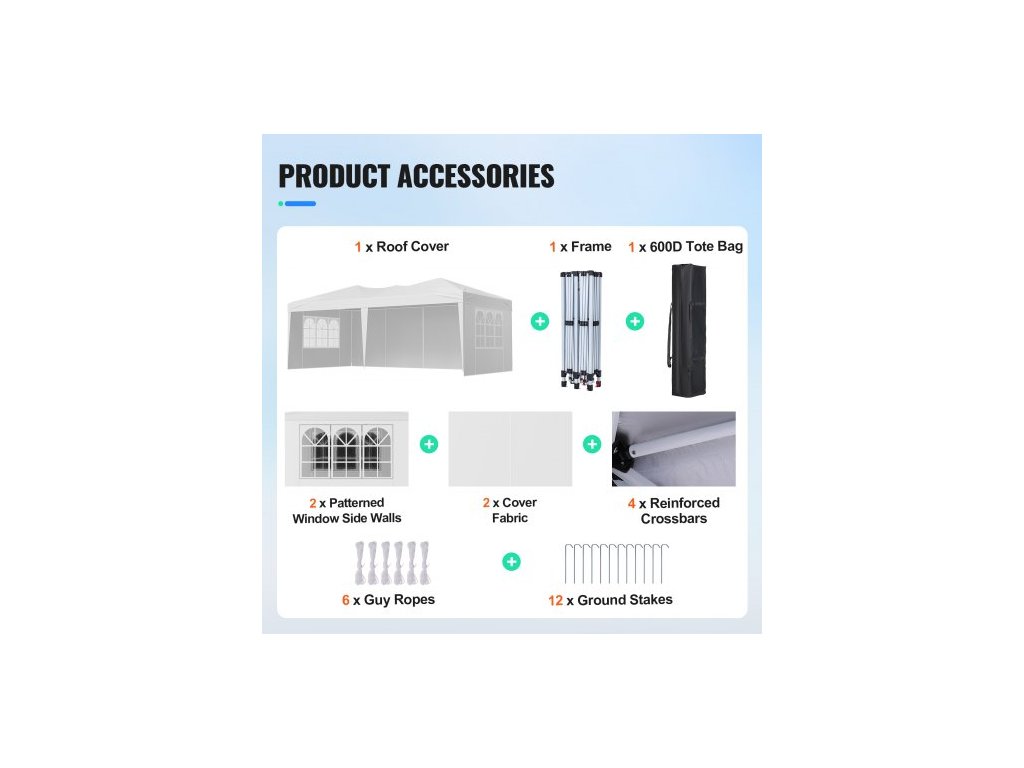 Úroveň ochrany proti UV záření: UPF 50+,Číslo modelu položky: ZYP-3X6,Hmotnost výrobku: 64,60 lbs / 29,3 kg,Okna: 2 vzorovaná okna,Rozměry výrobku: 19,36 x 9,69 x 8,66 stop / D 5,9 x Š 2,96 x V 2,65 m,Hlavní materiál: Železné tyče + plastové spojky + oxfordská tkanina 210D,Boční stěny: 4 krycí látky