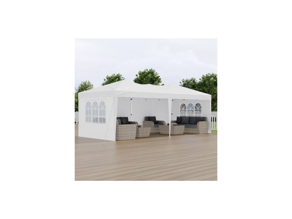 Výklopný zastřešující altán, 5,9 x 2,96 m, přenosný altán s okamžitou stříškou, 3 bočními stěnami a 2 větranými okny, výškově nastavitelný výklopný venkovní přístřešek pro akce, terasu, zahradu, párty, parkování