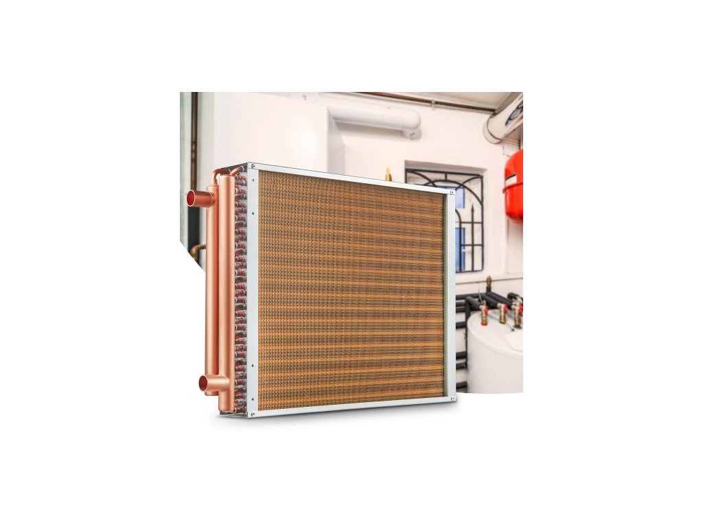 Tepelný výměník 18"x 20"/45,7 x 50,8 cm, voda-vzduch, 3 řady měděných portů 3/8"/1 cm, 242 žeberZesílené rozhraní