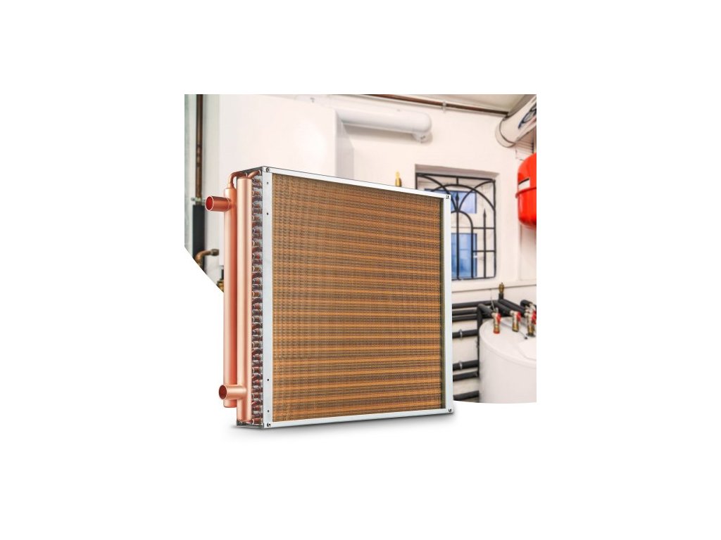 Výměník tepla 20"x 20"/50,8 x 50,8 cm, voda-vzduch, 3 řady měděných portů 3/8"/1 cm, 242 žeberZesílené rozhraní