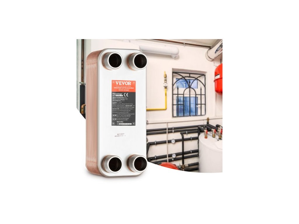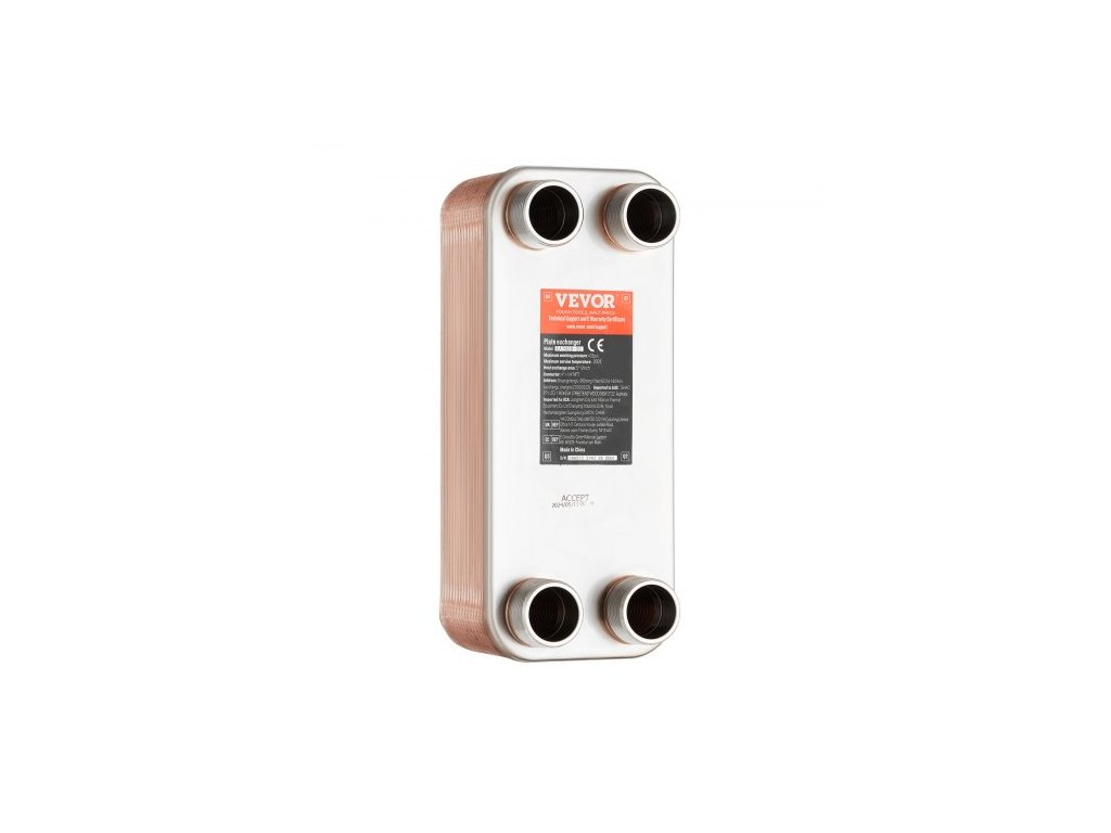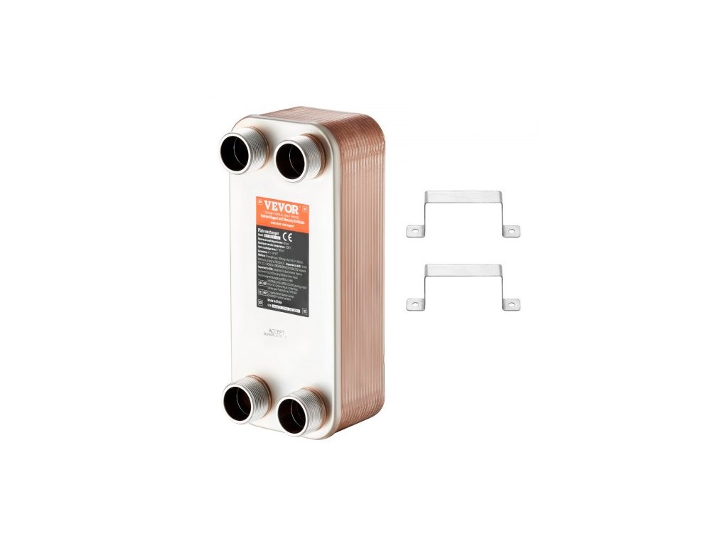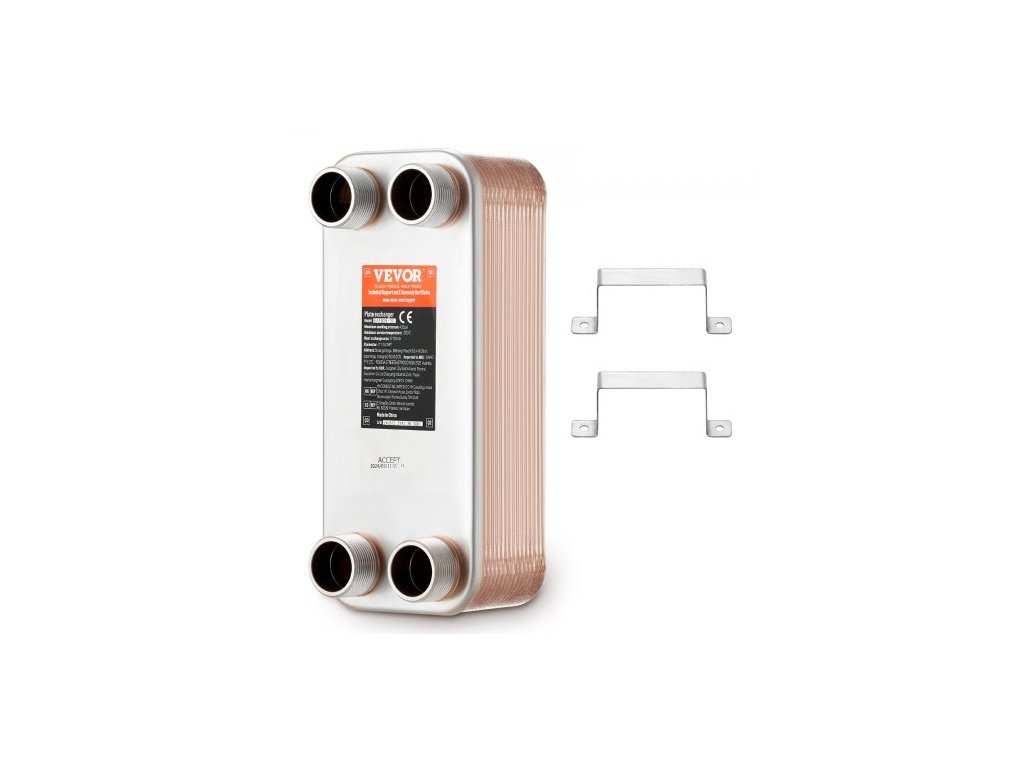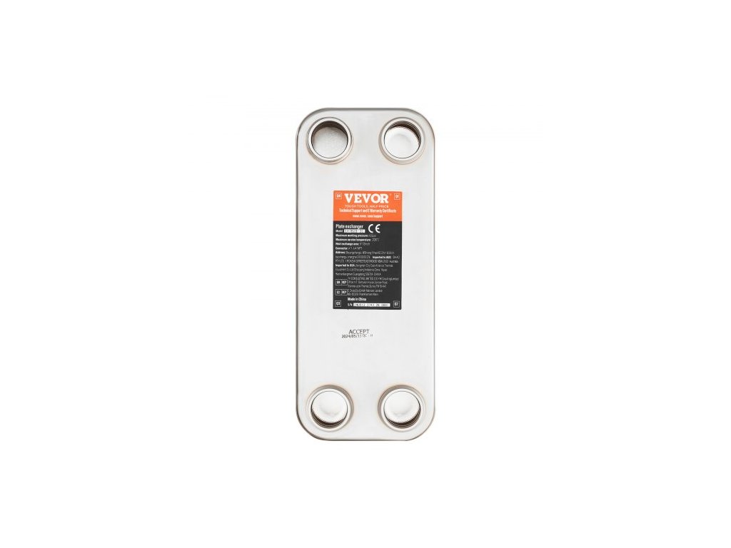 Plocha desek: 5x12 palců/ 127x305 mm, Tepelná kapacita: 260-360K BTU, Port: 4*1-1/4" MNPT vnější závit, Barva: nerezová ocel + měděná barva, Model: EATB28-30, Tepelná účinnost: 90~99 %, Materiál: nerezová ocel 304/316, Pájení: 99,9% měděné pájení, Počet desek (ks): 30, Rozměry produktu (D x Š x V): 11,85 x 4,96 x 4,33" / 301 x 126 x 110 mm, Čistá hmotnost (s příslušenstvím): 12,9 lb / 5,85 kg