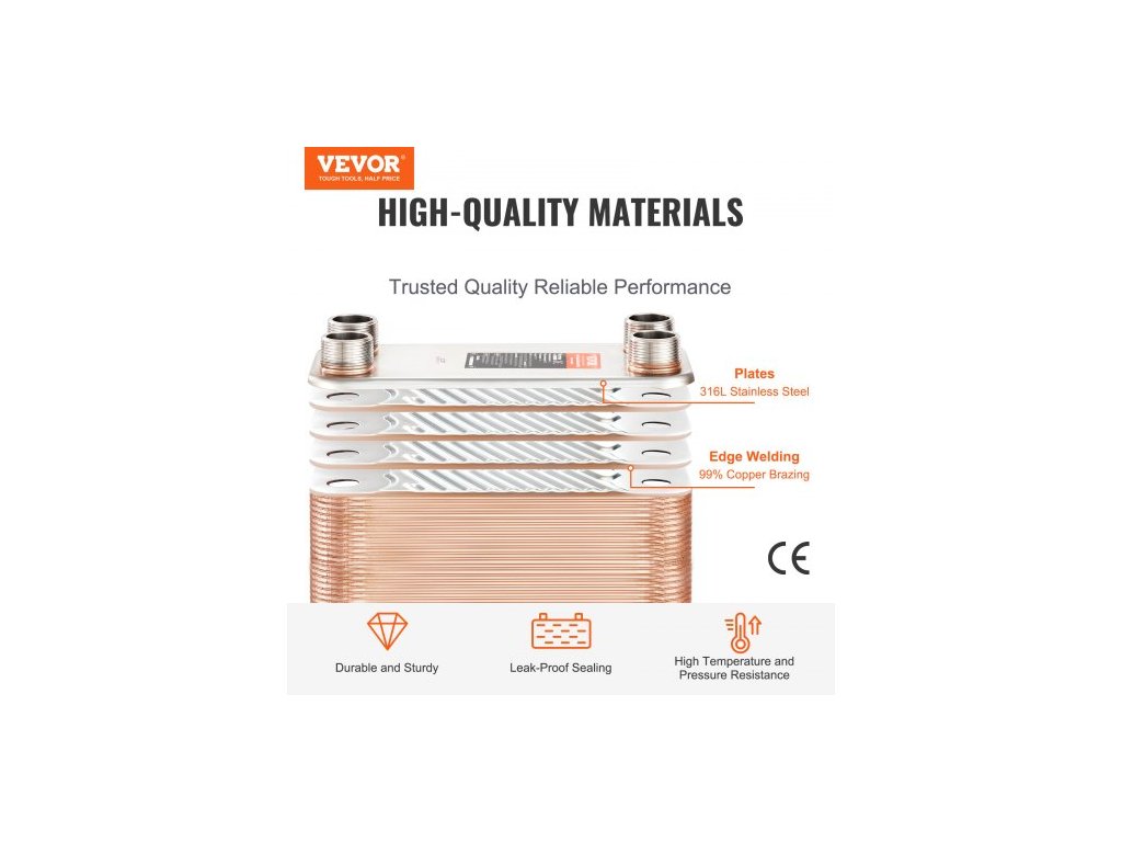 Výměník tepla , 5"x 12" 50 desek pájený deskový výměník tepla, měď/nerezová ocel 316L, výměník tepla voda-voda pro podlahové vytápění, ohřev vody, tání sněhu, chlazení pivaZesílené rozhraní
