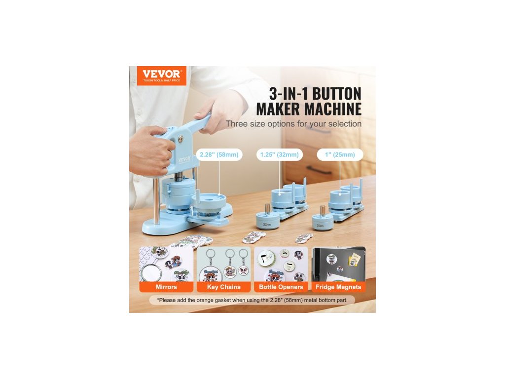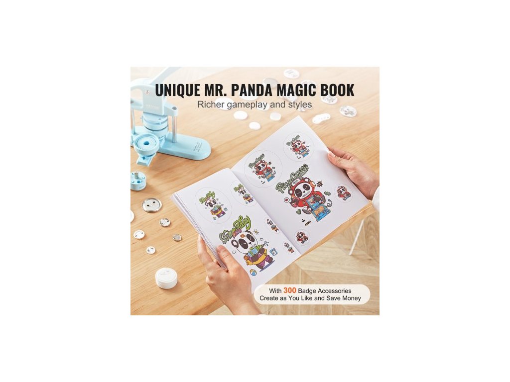 Výrobník knoflíků , 1/1,25/2,28 palce (25/32/58 mm) 3v1 výrobník odznaků, 300 ks dílů na knoflíky, stroj na výrobu knoflíků s kouzelnou knihou Panda, ergonomická oblouková rukojeť, sada děrovacích lisů, pro děti, DIY dárky, modráDesign 3 v 1