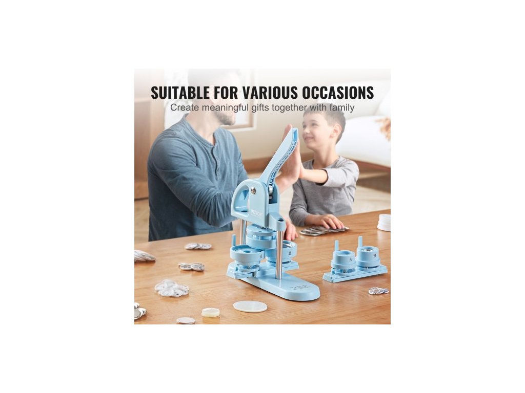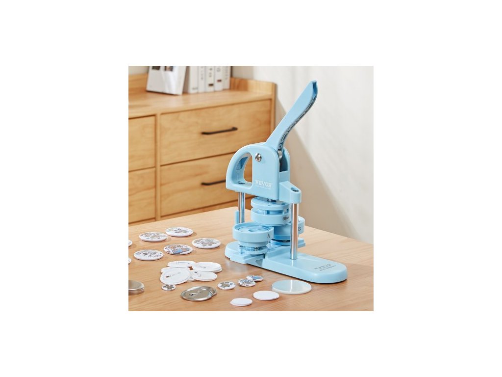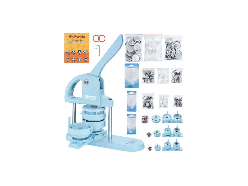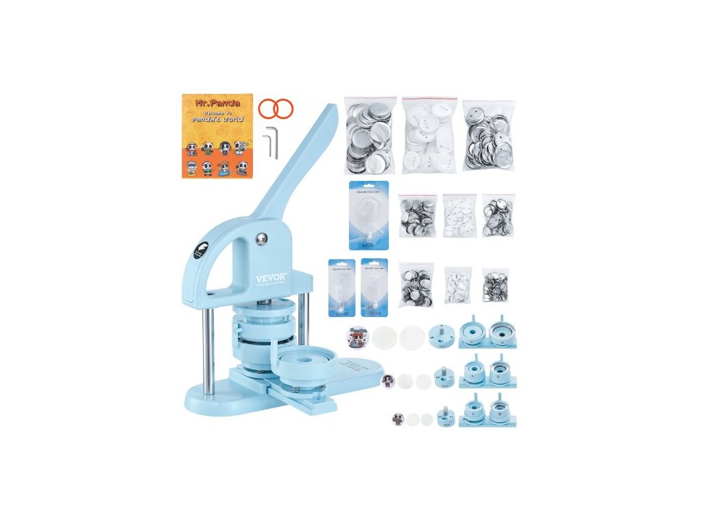 Výrobník knoflíků , 1/1,25/2,28 palce (25/32/58 mm) 3v1, výrobník špendlíků, 300 ks dílů pro knoflíky, stroj na výrobu knoflíků s kouzelnou knihou Panda, ergonomická oblouková rukojeť, sada děrovacích lisů, pro děti, DIY dárky, modrá
