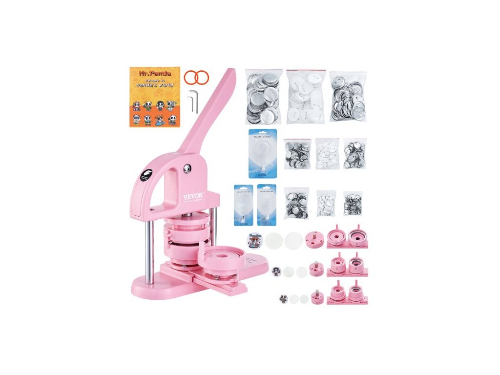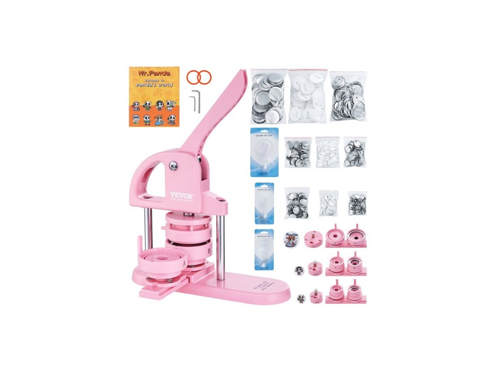 Výrobník knoflíků , 1/1,25/2,28 palce (25/32/58 mm) 3v1 výrobník odznaků, 300 ks dílů na knoflíky, stroj na výrobu knoflíků s kouzelnou knihou Panda, ergonomická oblouková rukojeť, sada děrovacích lisů, pro děti, DIY dárky, růžováDesign 3 v 1