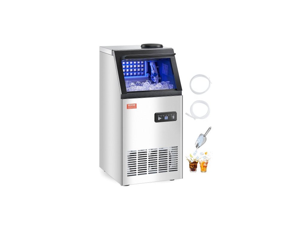 Výrobník ledu 120lbs/24H pro komerční použití, 36 kostek ledu za 15 minut, volně stojící výrobník ledu s velkou úložnou kapacitou 28lbs pro bar, kancelář, restauraci, s digitálním LED displejem a samočištěnímZávěs na kopečky ledu