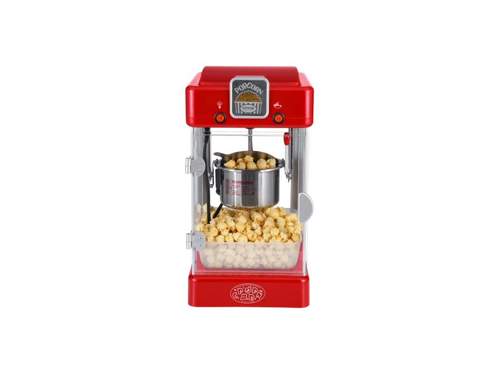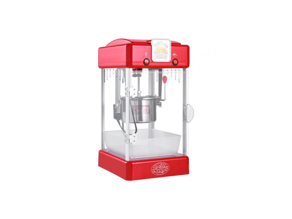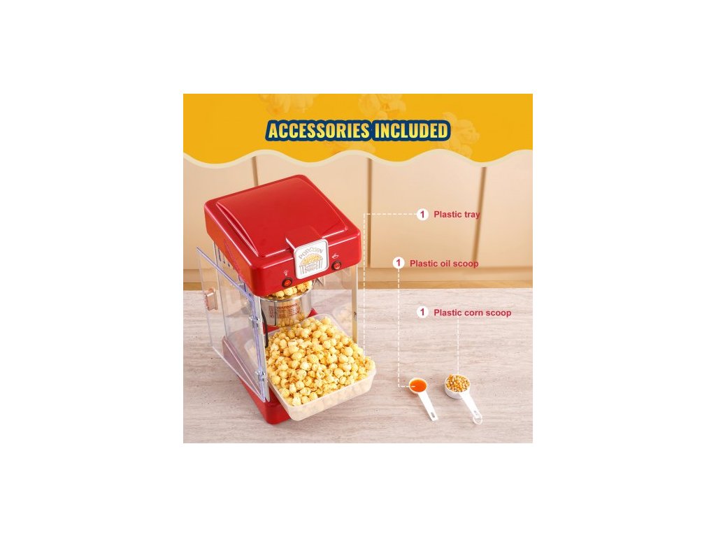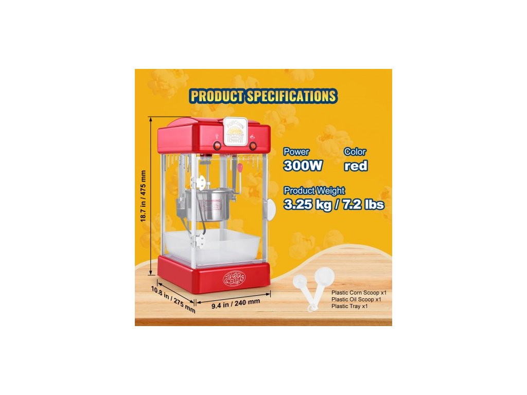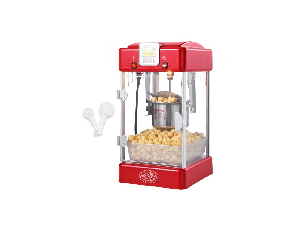 Výrobník popcornu , 300W stroj na popcorn, konvice o objemu 2,5 oz, vyrobí 4 qt na dávku, stolní výrobník popcornu s PP dvířky, obsahuje 2 odměrky a tác, styl kina, červený