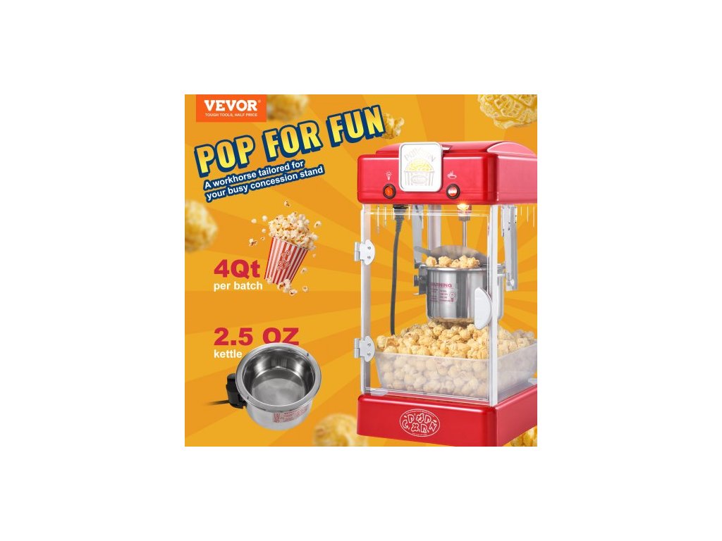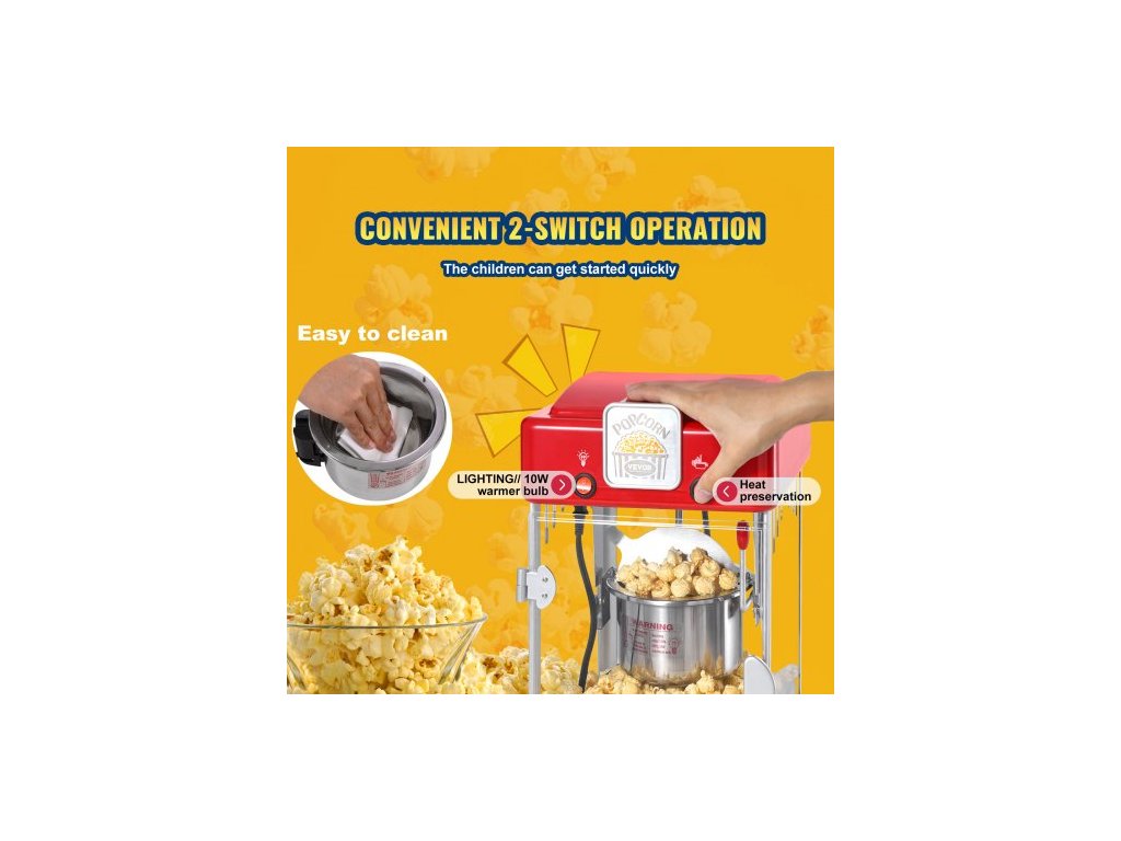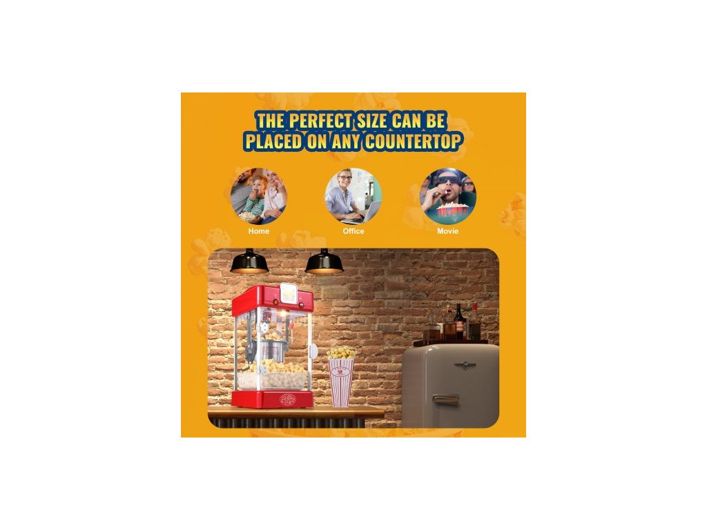 Výrobník popcornu , 300W stroj na popcorn, konvice o objemu 2,5 oz, vyrobí 4 qt na dávku, stolní výrobník popcornu s PP dvířky, obsahuje 2 odměrky a tác, styl kina, červenýSkvělý zážitek