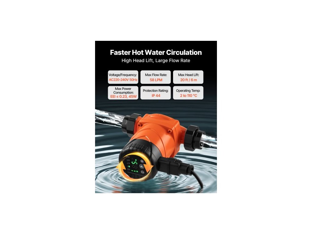 Napětí/frekvence: AC 220-240V 50Hz, Provozní hluk: ≤ 45 dBA, Maximální spotřeba energie: EEI ≤ 0,23, 45 W, Stupeň krytí: IP44, Maximální zdvih: 6 m, Typ připojení: Závitové, φ 130 mm, Číslo modelu položky: LPS25-6BP/130, Maximální průtok: 58 l/min, Provozní režimy: Více režimů, AUTO Režim nastavení, provozní teplota vody: 2 až 110 ℃