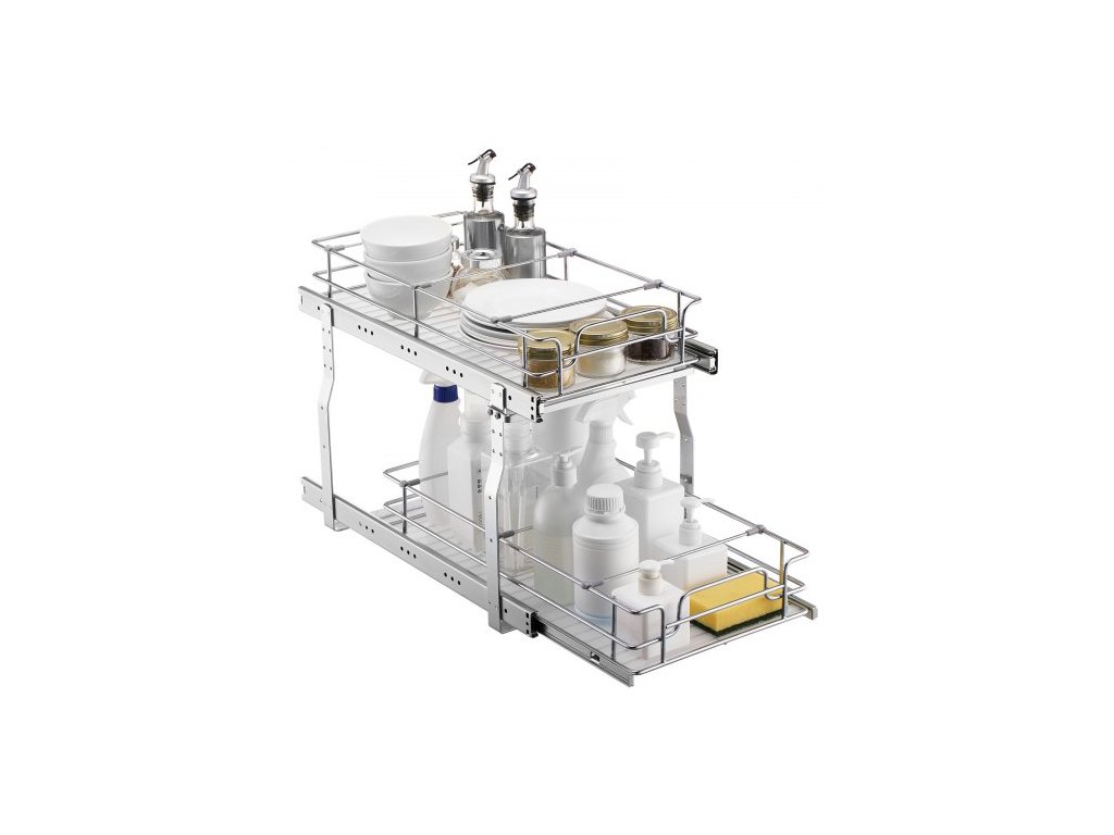 Výsuvný organizér na skříňky 12"Š x 21"H x 15"V, Odolné výsuvné police do spíže, Ocelové výsuvné zásuvky, Posuvný úložný prostor do zásuvky pro domácnost pod dřez, Instalační rozměry skříňky 13,5"Š x 22"H x 18"VFlexibilní rozdělení