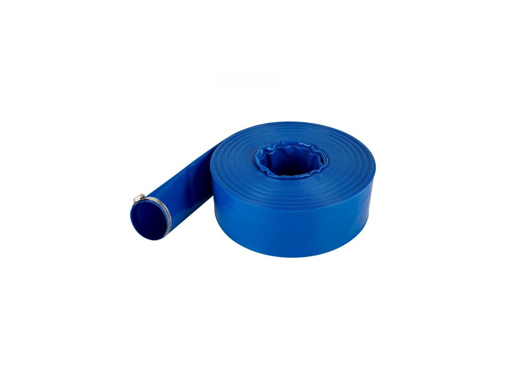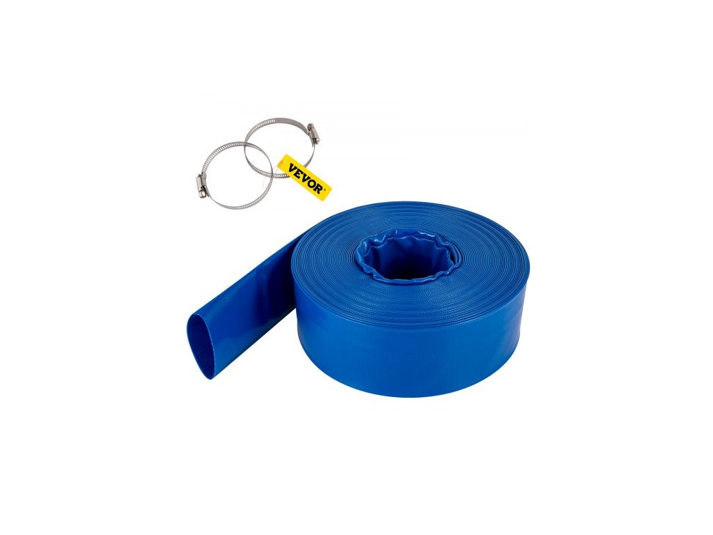 Výtlačná hadice , 3,81 x 3200,4 cm, plochá hadice z PVC tkaniny, odolná proti zpětnému proplachu se svorkami, odolná vůči povětrnostním vlivům a prasknutí, ideální pro bazény a přečerpávání vody, modrá