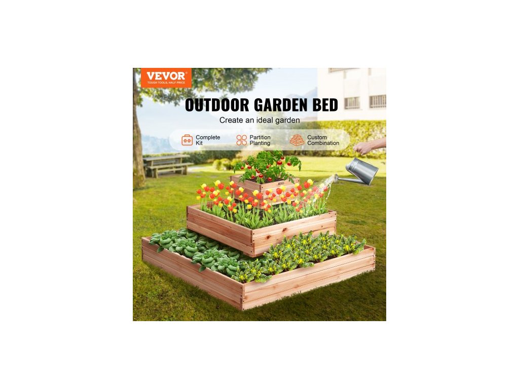 Vyvýšený záhon , dřevěný květináč 3,7 x 3,7 x 1,7 stopy, venkovní květináče s otevřeným dnem, pro pěstování květin/zeleniny/bylin na zahradě/terase/balkonu, burlywoodBezkonkurenční materiál