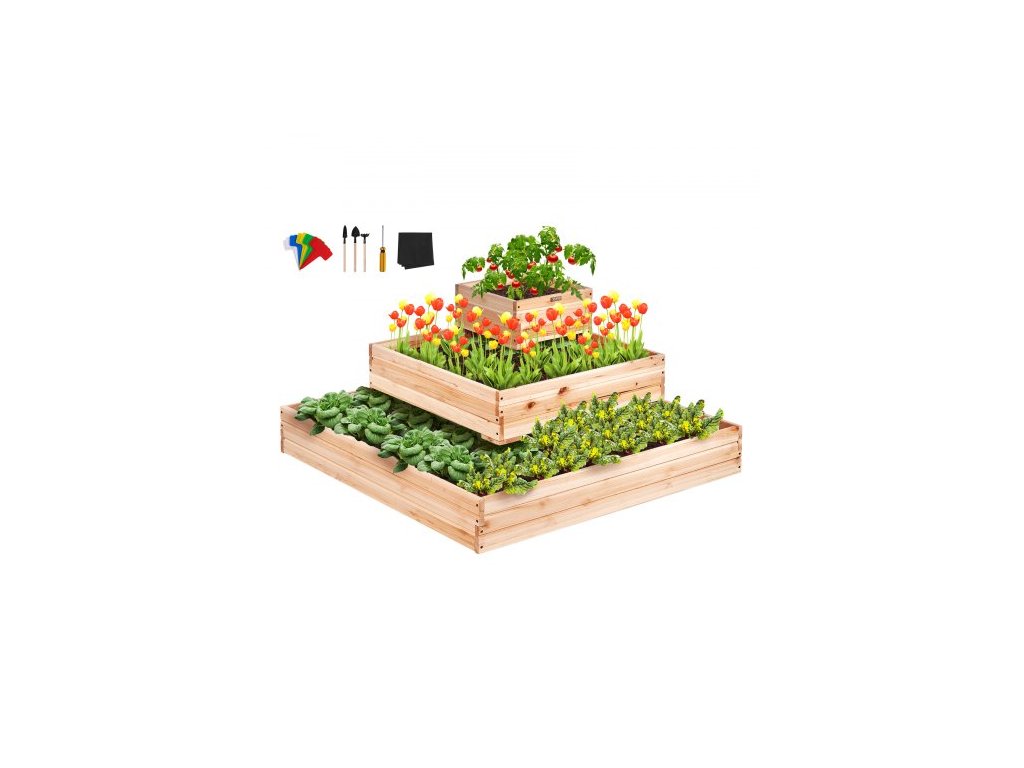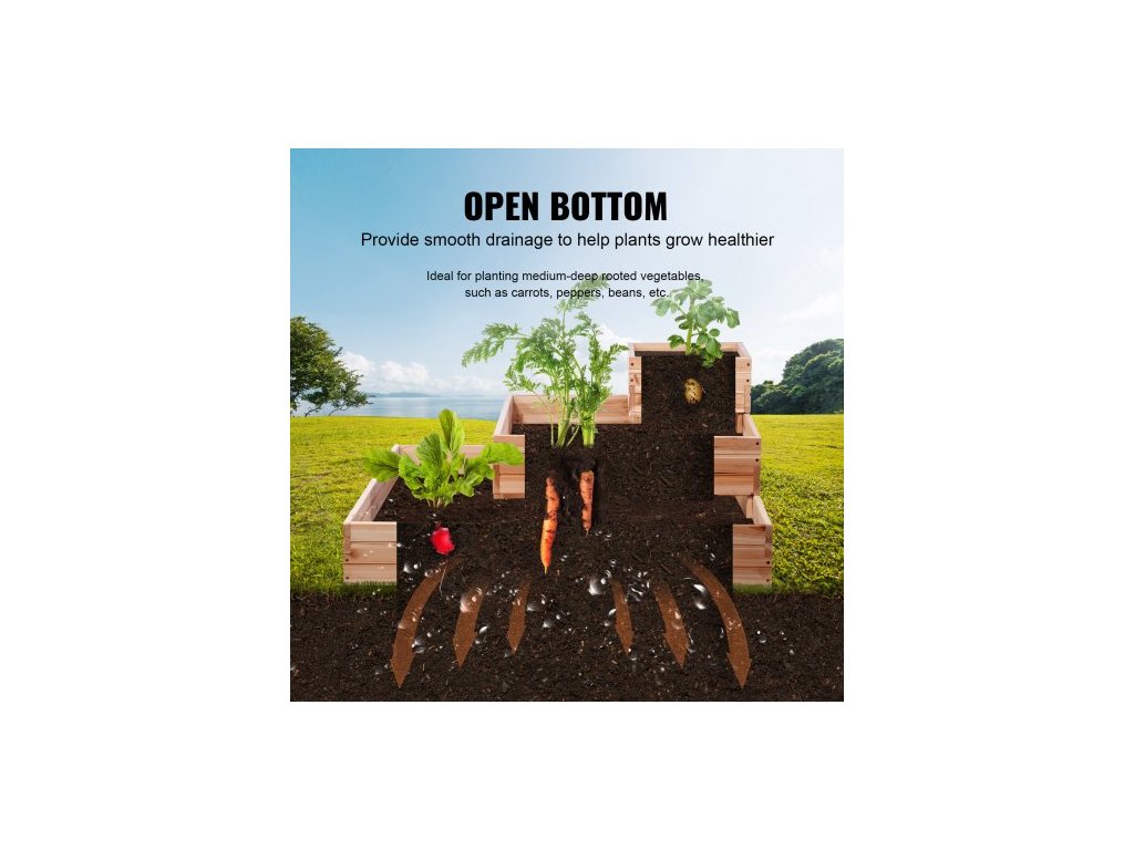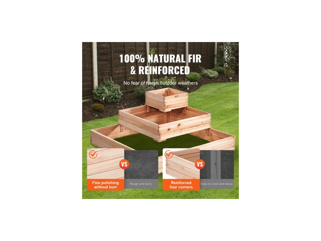 Vyvýšený záhon , dřevěný květináč 3,7 x 3,7 x 1,7 stopy, venkovní květináče s otevřeným dnem, pro pěstování květin/zeleniny/bylin na zahradě/terase/balkonu, Burlywood
