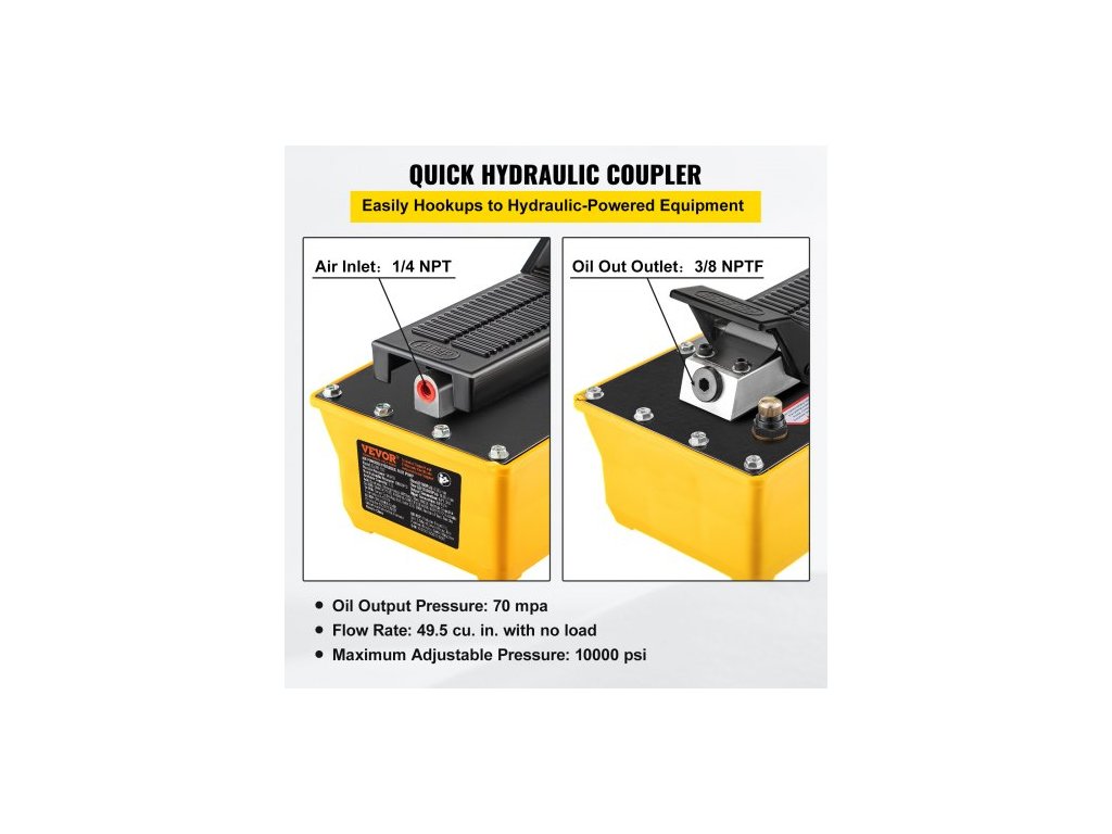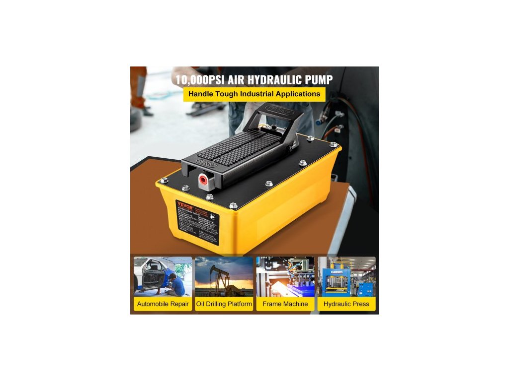 Vzduchovo-hydraulické čerpadlo , hydraulické nožní čerpadlo s tlakem 10 000 PSI, nádrž 1,89 l, nožně ovládané vzduchovo-hydraulické čerpadlo, s hadicí a stříkací pistolí pro těžké stroje, opravy automobilů, karosářské strojeStandardní vstup vzduchu a výstup oleje
