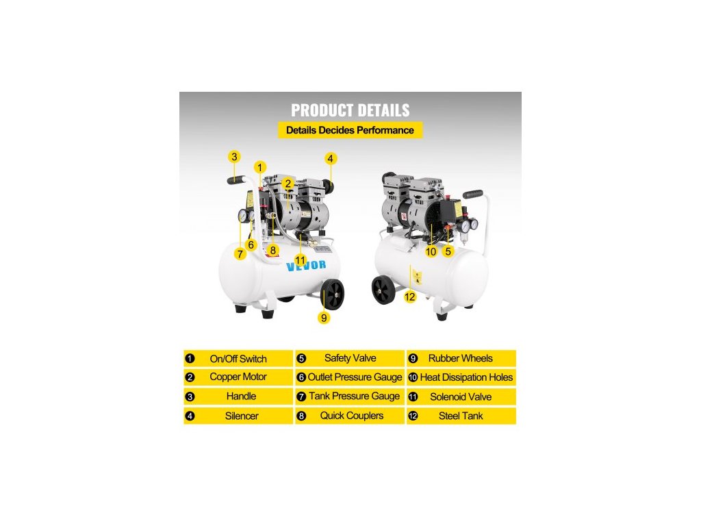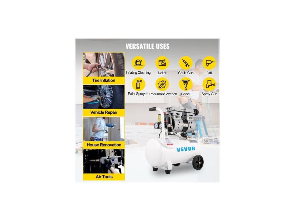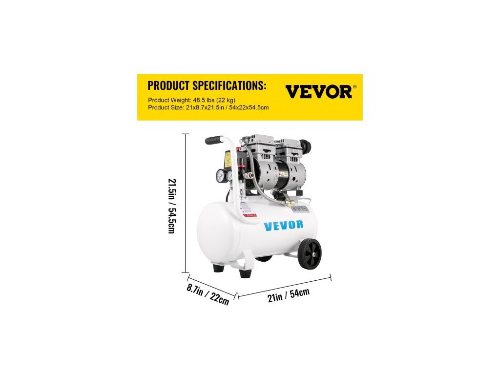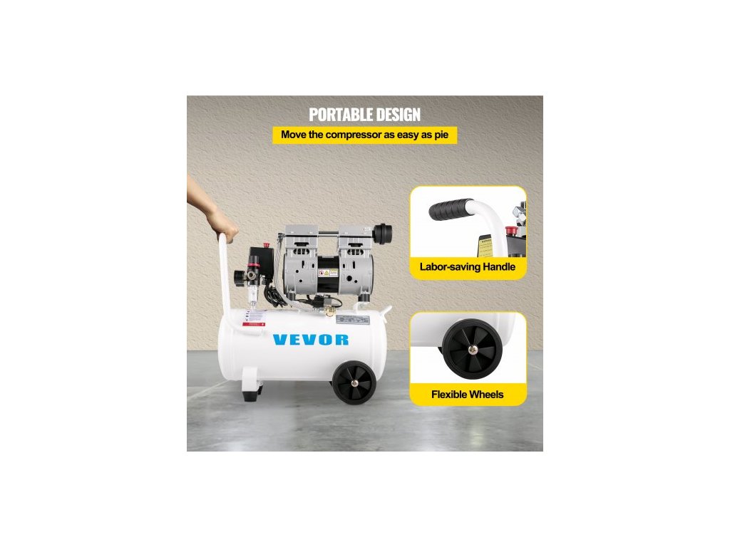 Vzduchový kompresor 20,8 l, přenosný vzduchový kompresor 1 HP, bezolejový vzduchový kompresor s ocelovou nádrží 750 W, tlakový vzduchový kompresor 115 PSI, ultratichý kompresor pro domácí opravy, huštění pneumatikobjem 25 l a bezolejové čerpadlo