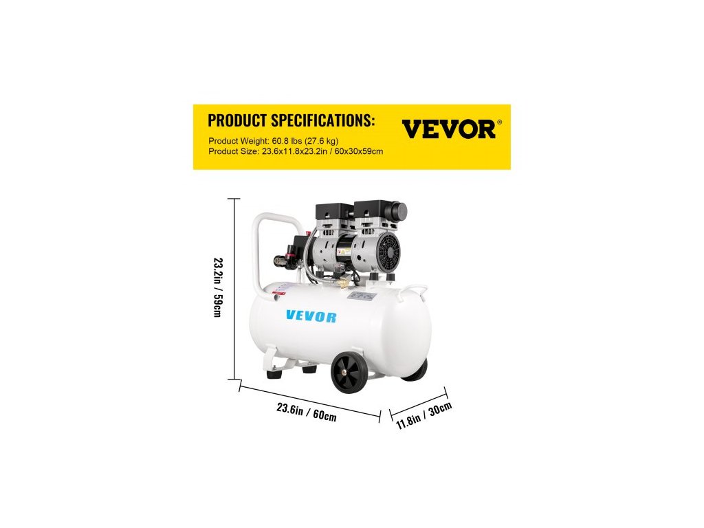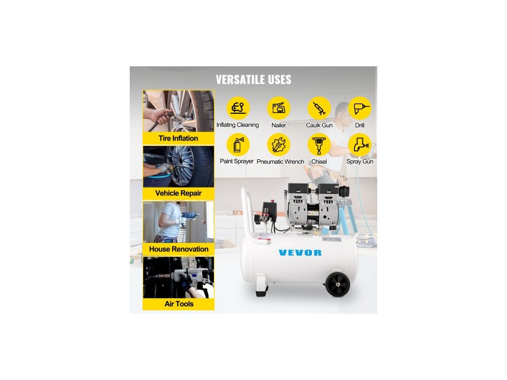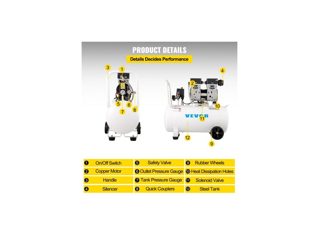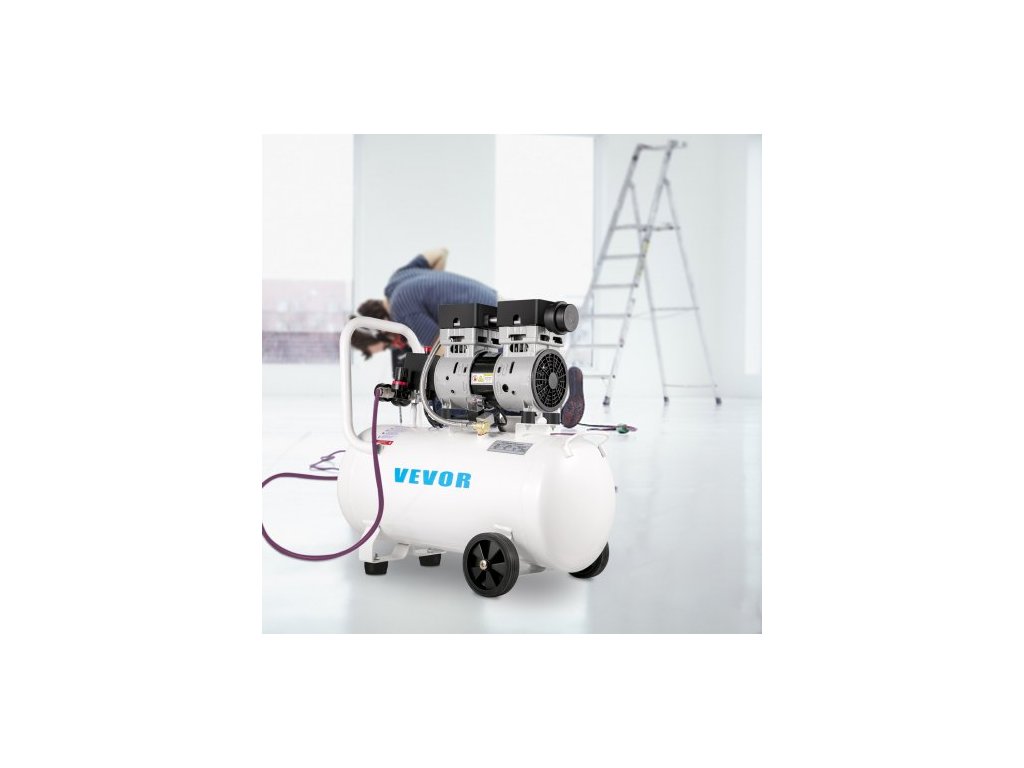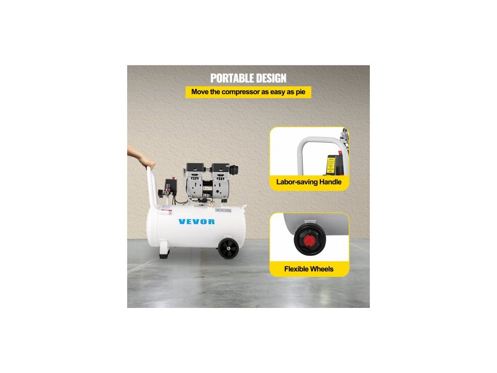 Vzduchový kompresor 41,6 l, ultra tichý vzduchový kompresor 1 HP, bezolejový vzduchový kompresor s ocelovou nádrží 750 W, přenosný vzduchový kompresor 8 barů, ultra tichý kompresor pro domácí opravy, huštění pneumatik