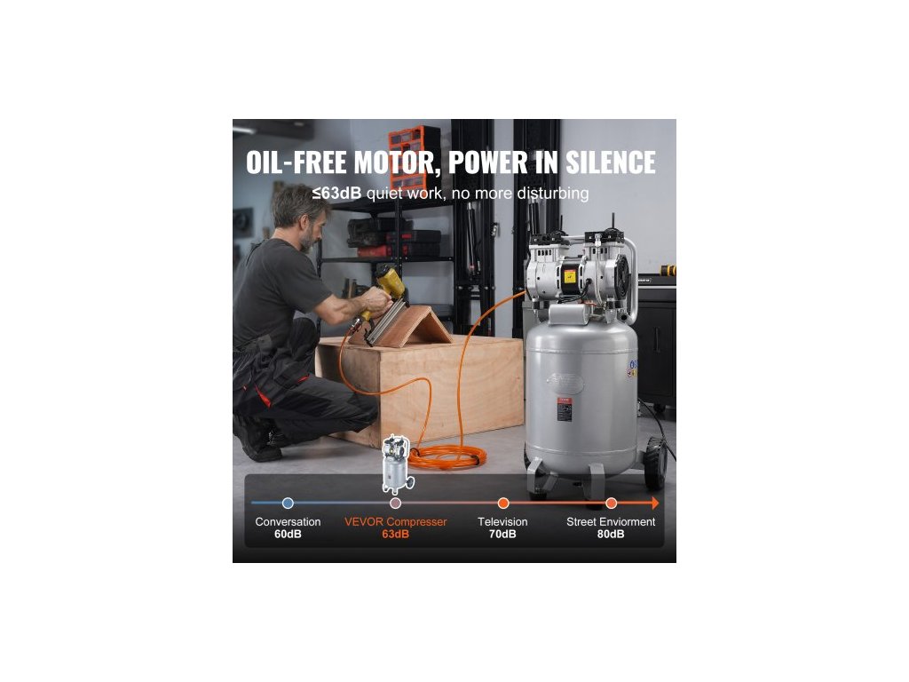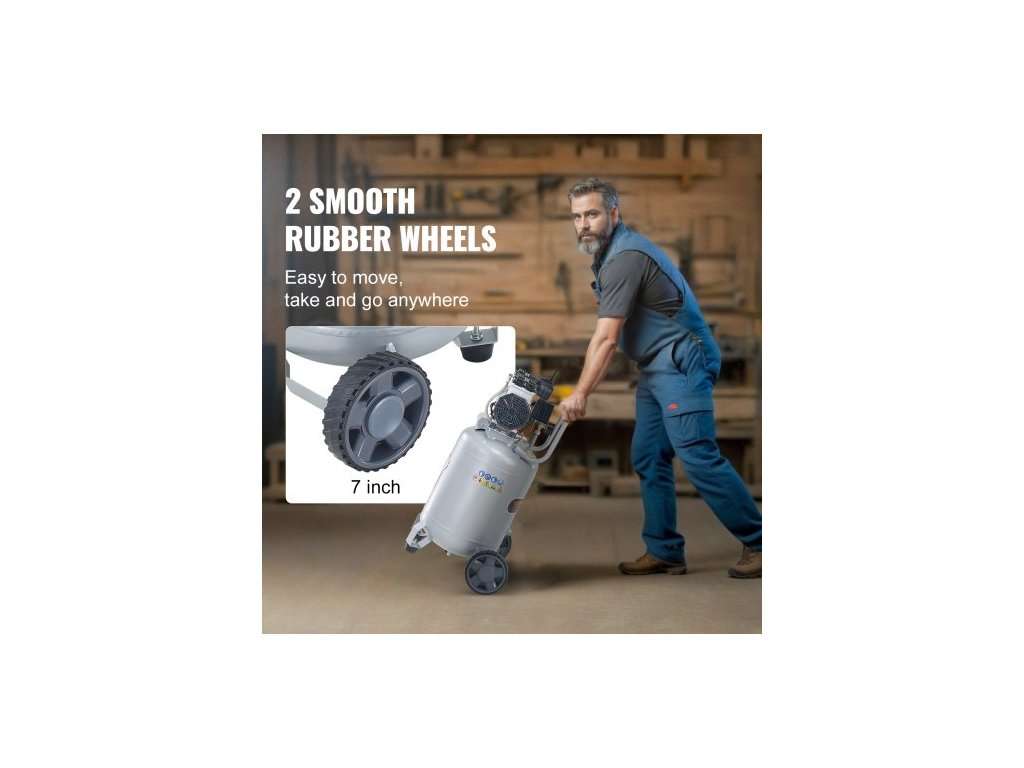 Vzduchový kompresor 49,2 l 2HP 4 SCFM@90PSI Bezolejový vzduchový kompresor 116PSIEfektivní a tichý provoz